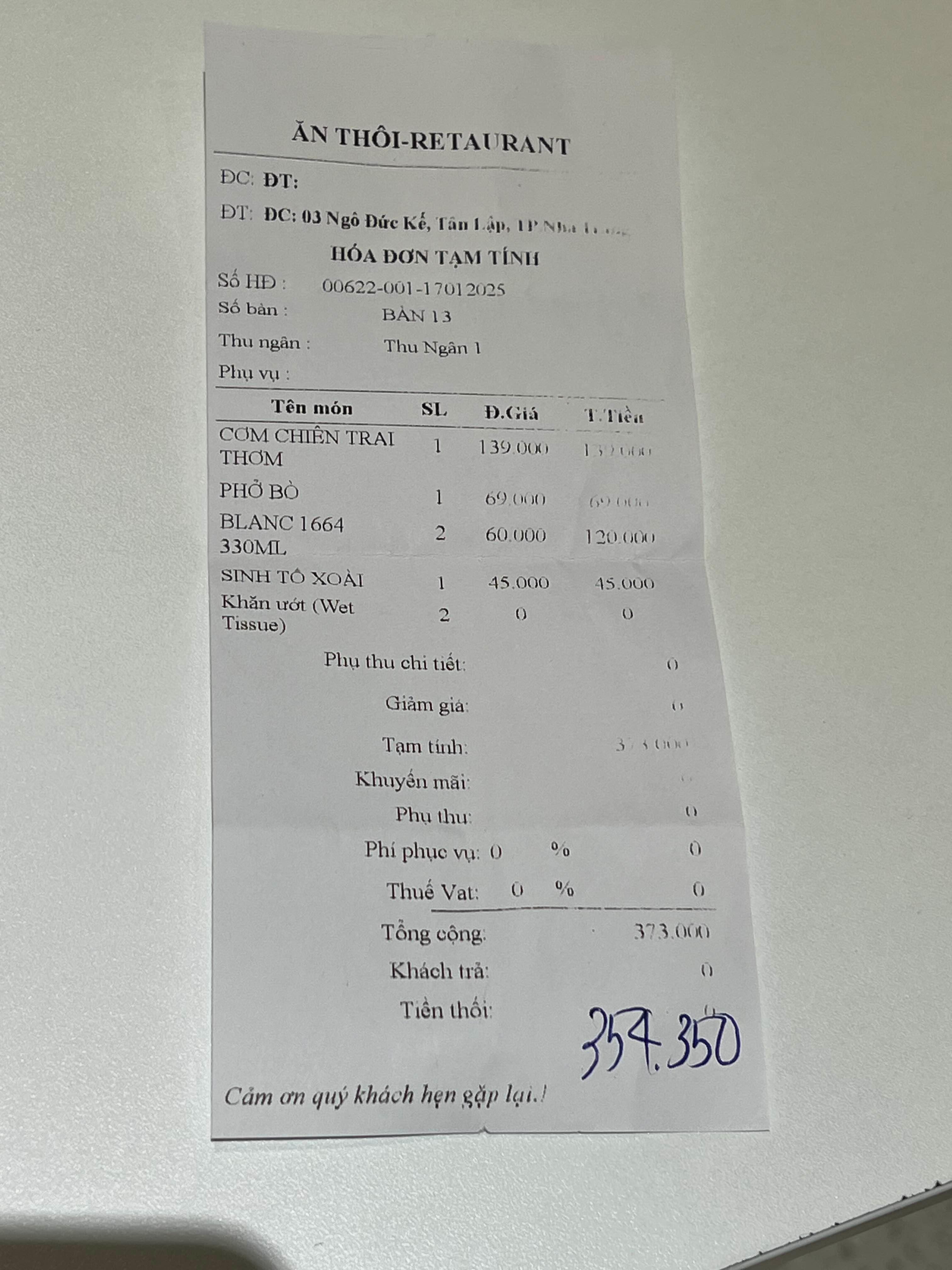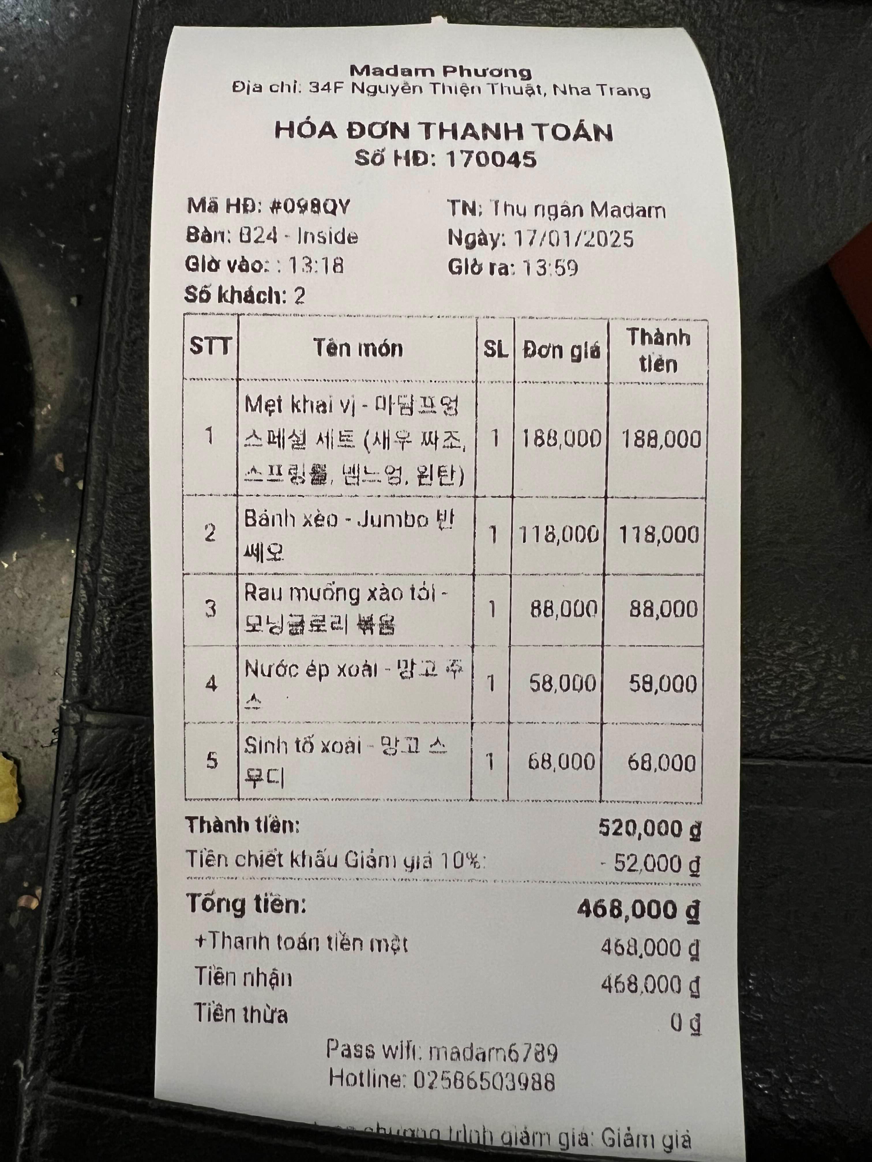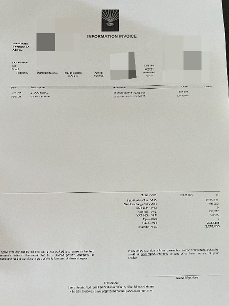 더 아남 레스토랑에서 후불로 먹은거 결제하면 체크아웃 완료된다!