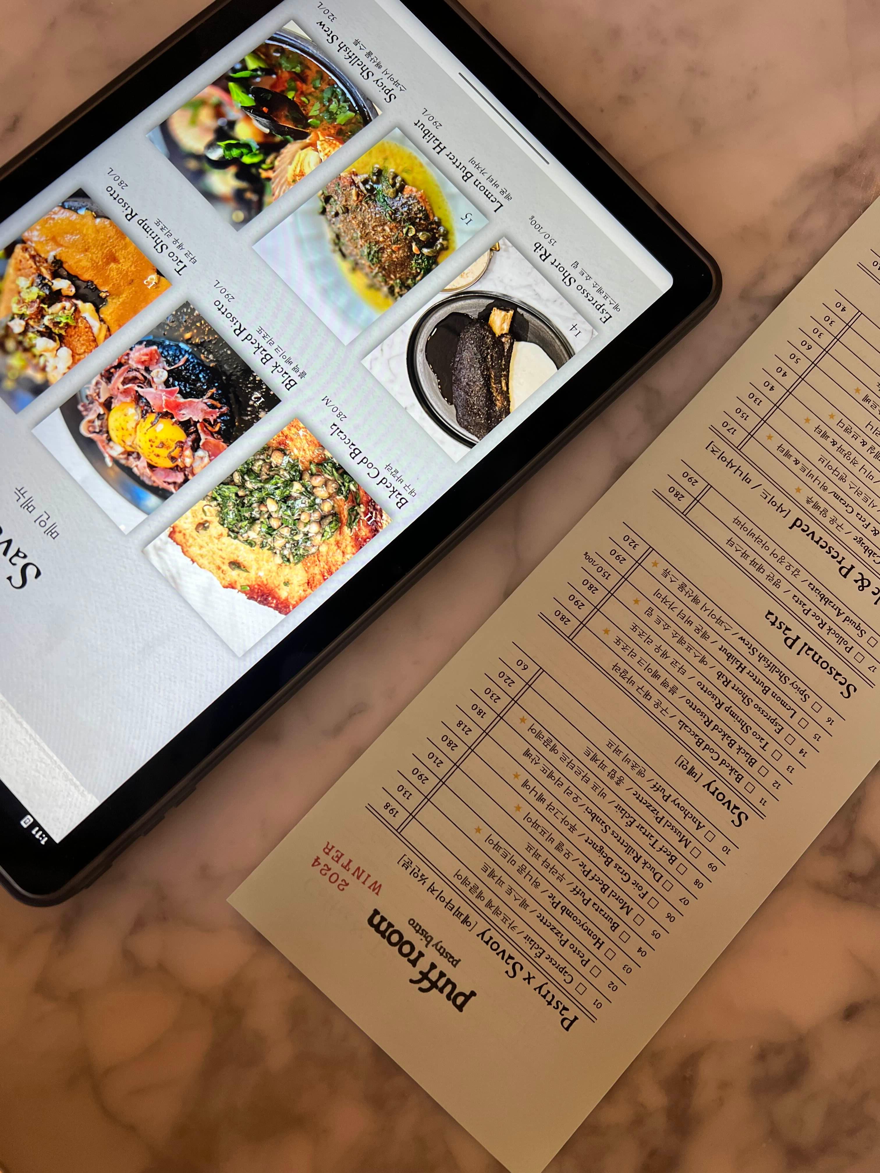 메뉴는 패드로 볼 수 있고, 주문서에 체크를 해서 직원에게 전달하면 된다