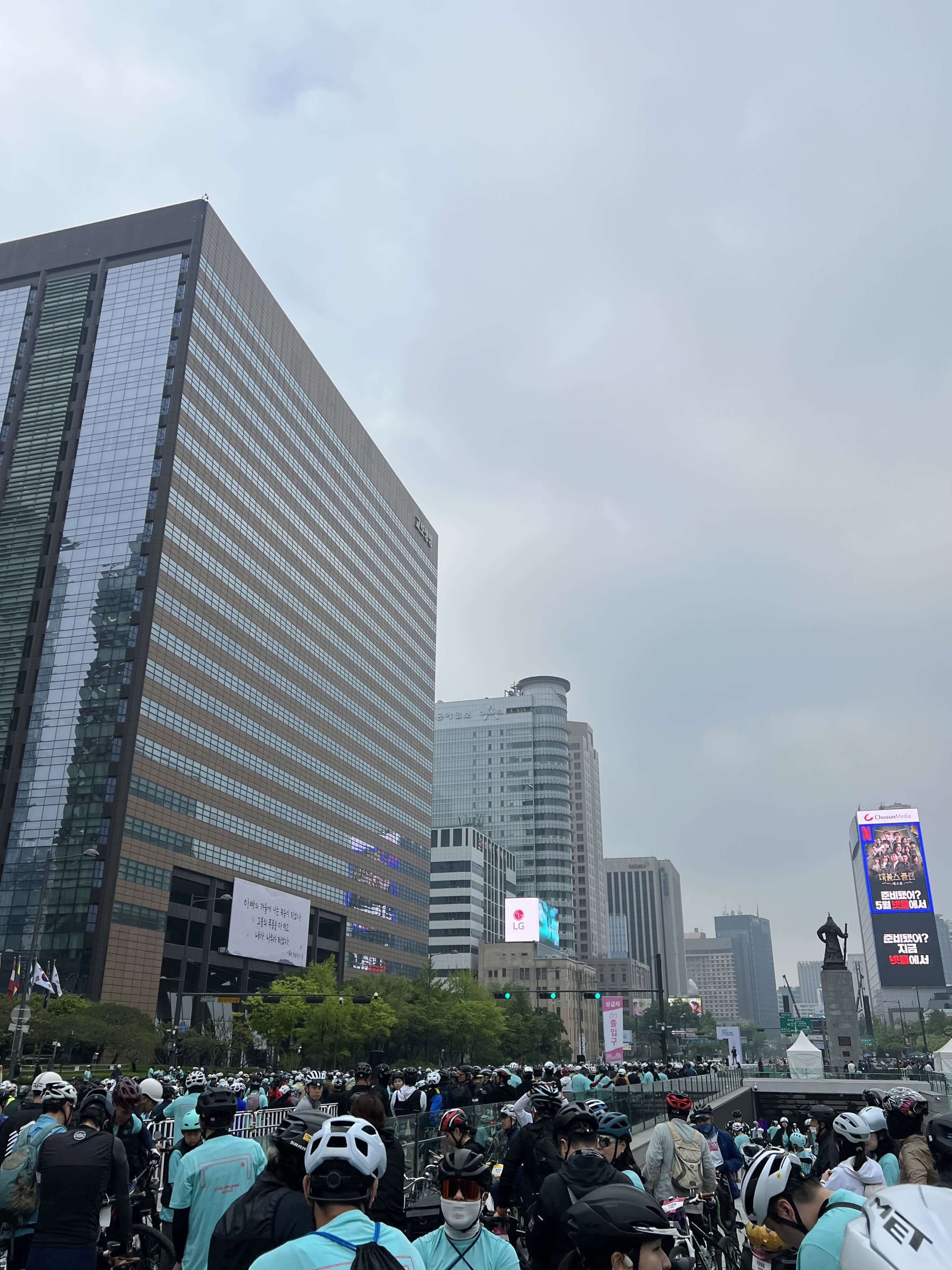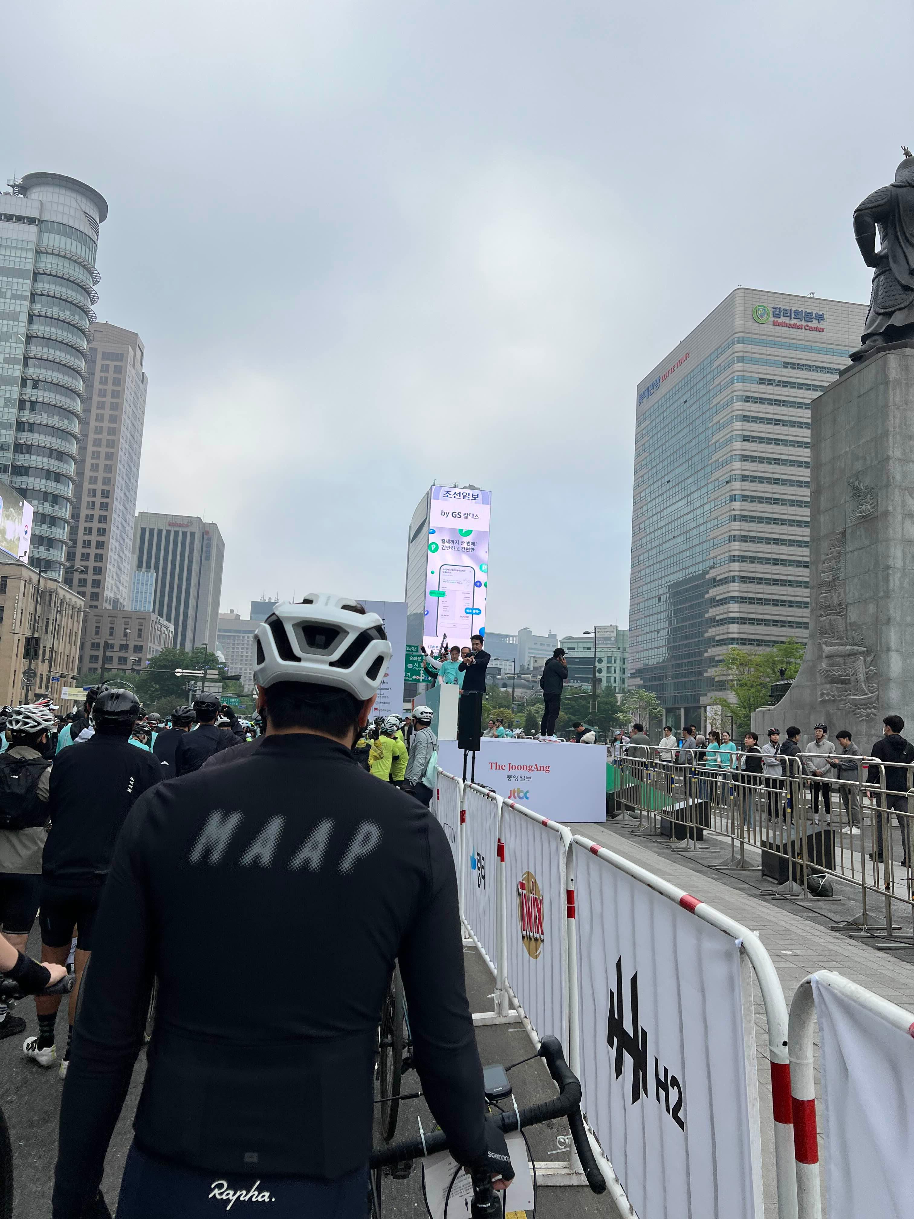 오늘은 약간 늦잠을 자서인지 출발 라인 쪽에 줄을 서지 못해서 약간 가장자리 쪽에서 대기를 한 후