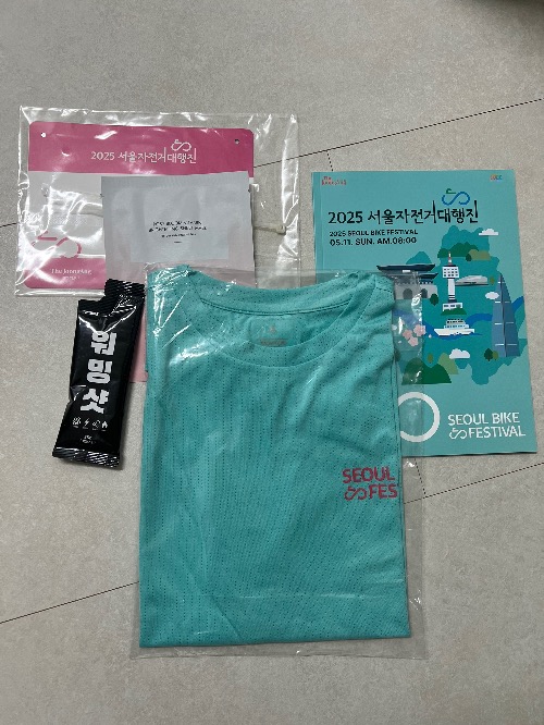 티셔츠, 워밍샷, 마스크팩, 배번표 들어있다.