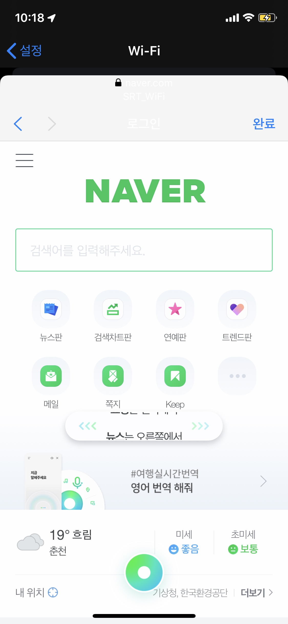 동의 누르니까, 네이버가 뜨네요