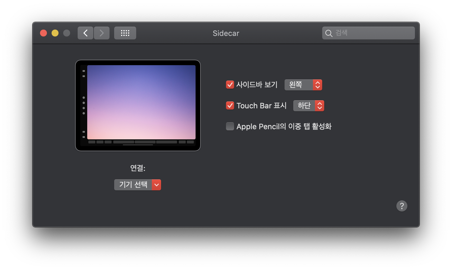 환경설정에 사이드카 메뉴가 생겼다