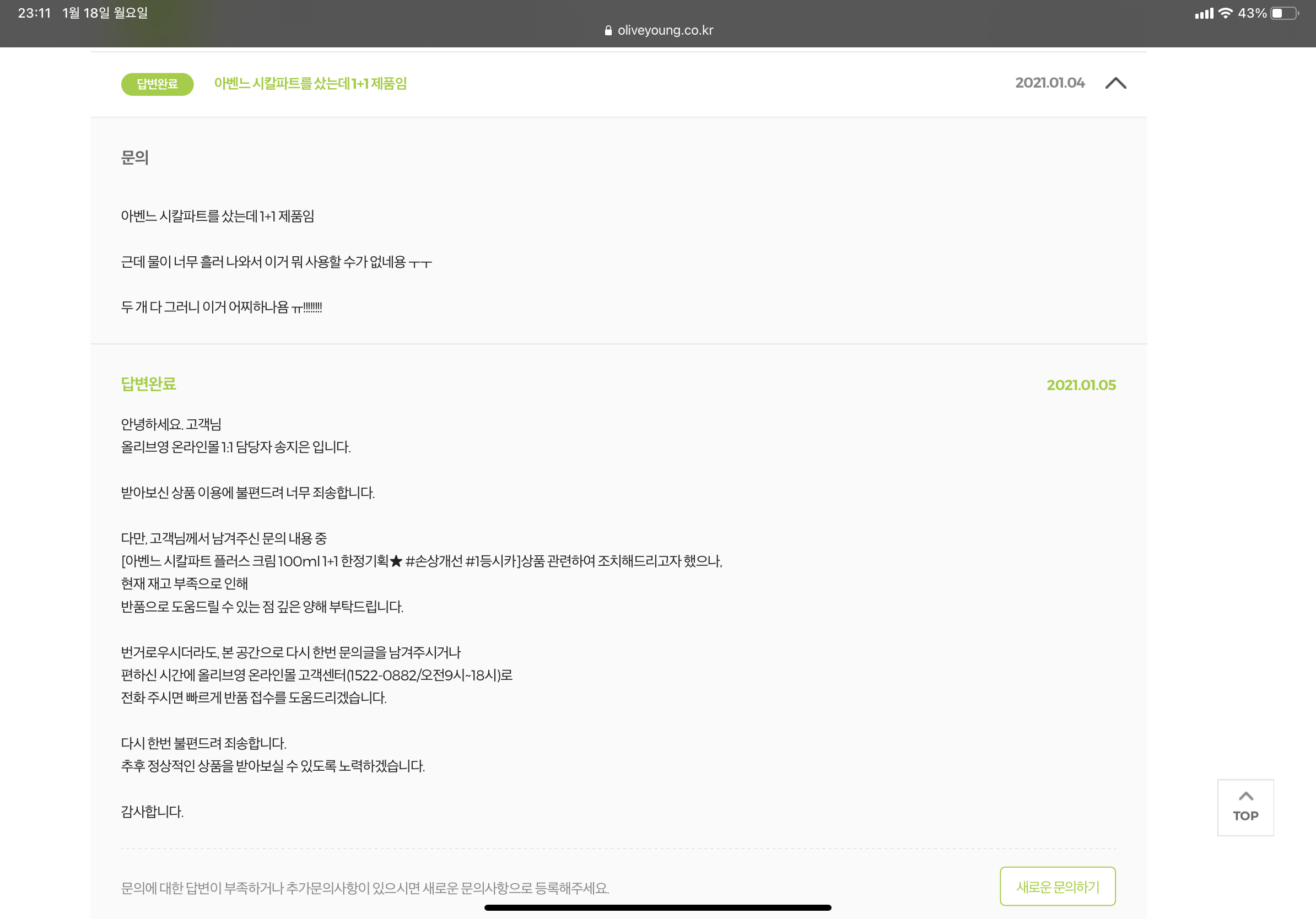 그래서 그냥 쓸까 하다가 문의를 남겼다.