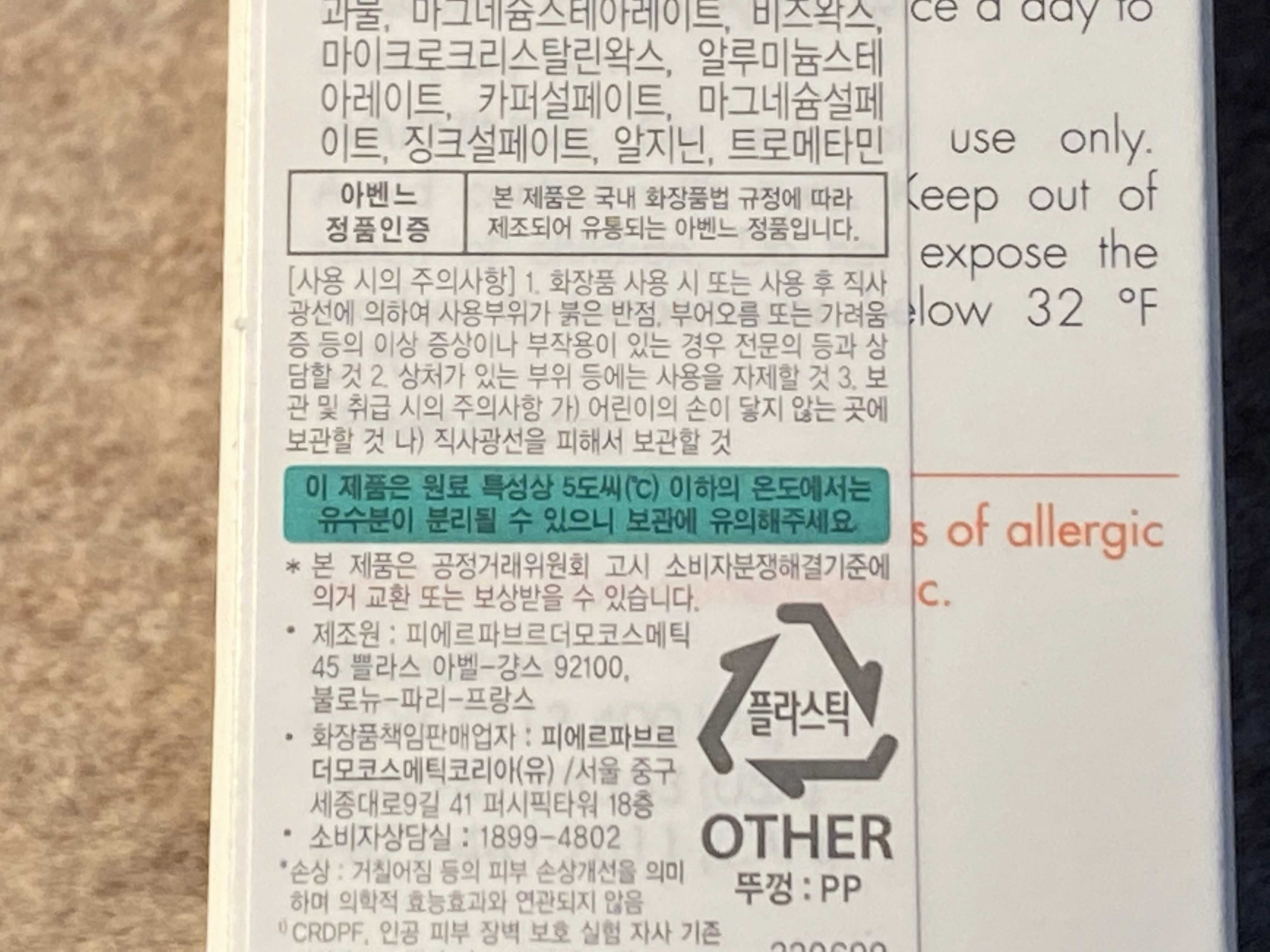 겉에도 쓰여있다. 5도씨 이하의 온도에서는 유수분이 분리될 수 있다.. 아 예예....