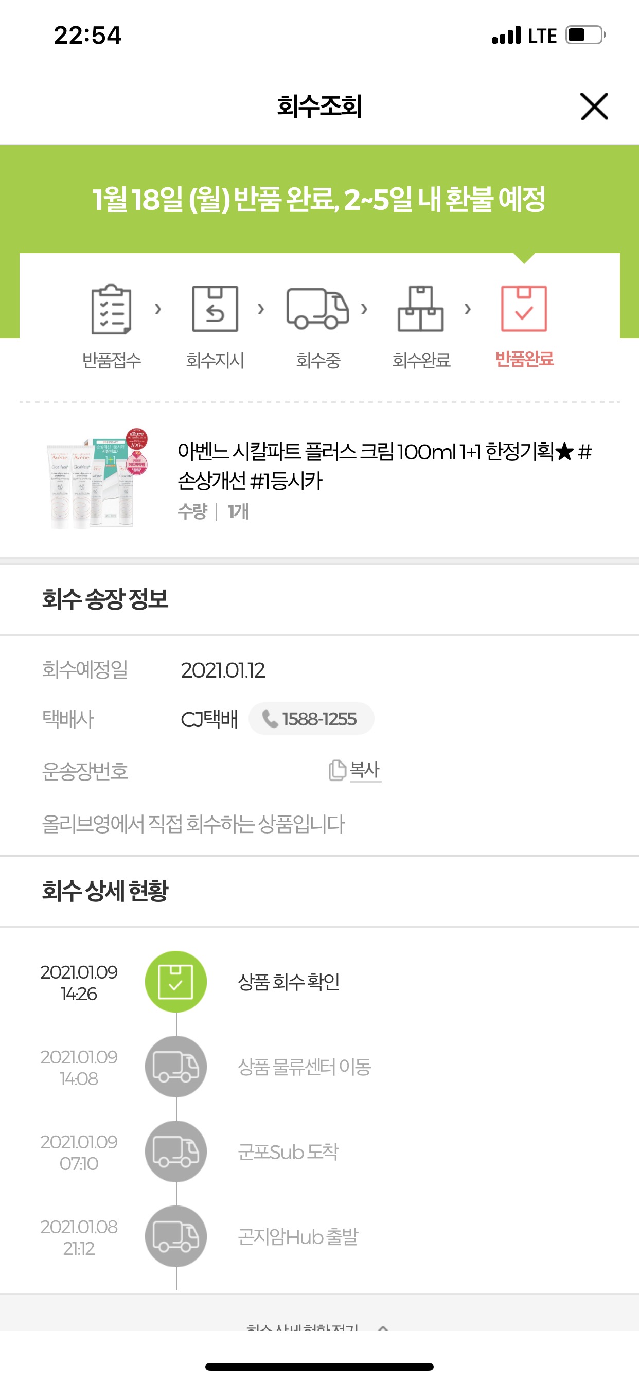 근데 오늘 1월 18일이 돼서야 반품이 완료됐다 ㅋㅋ