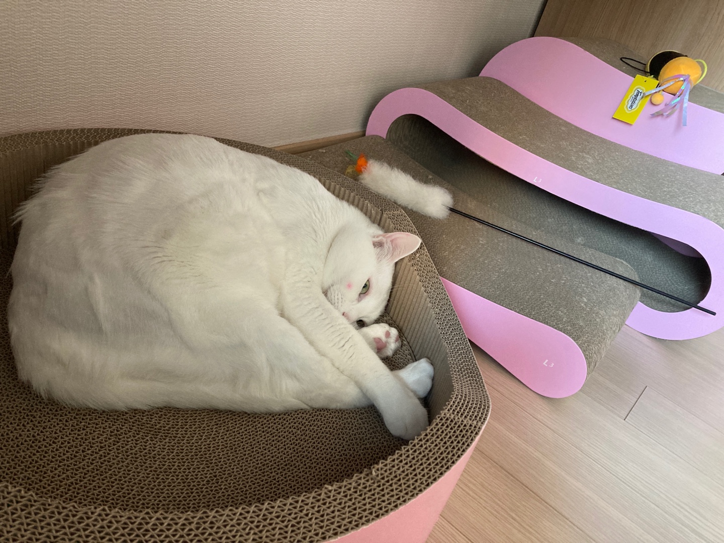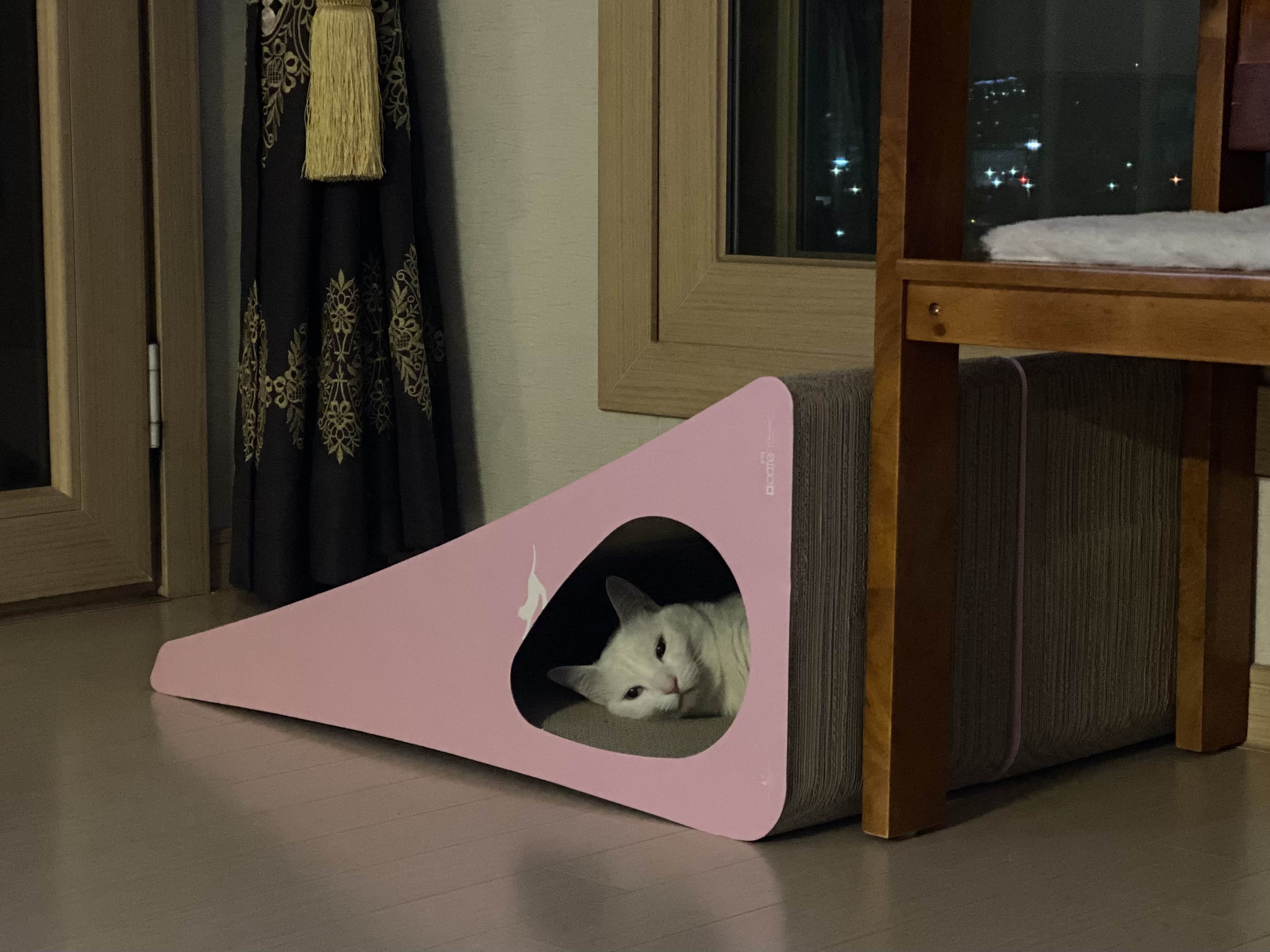 뽀떼 스크래쳐 L0(제일 좋아하는 스크래쳐)에서 쉬고 있는 우리 능이