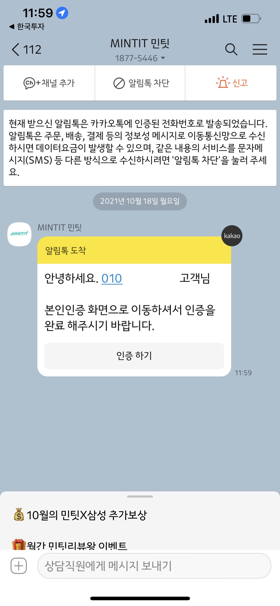 문자로 본인인증하기