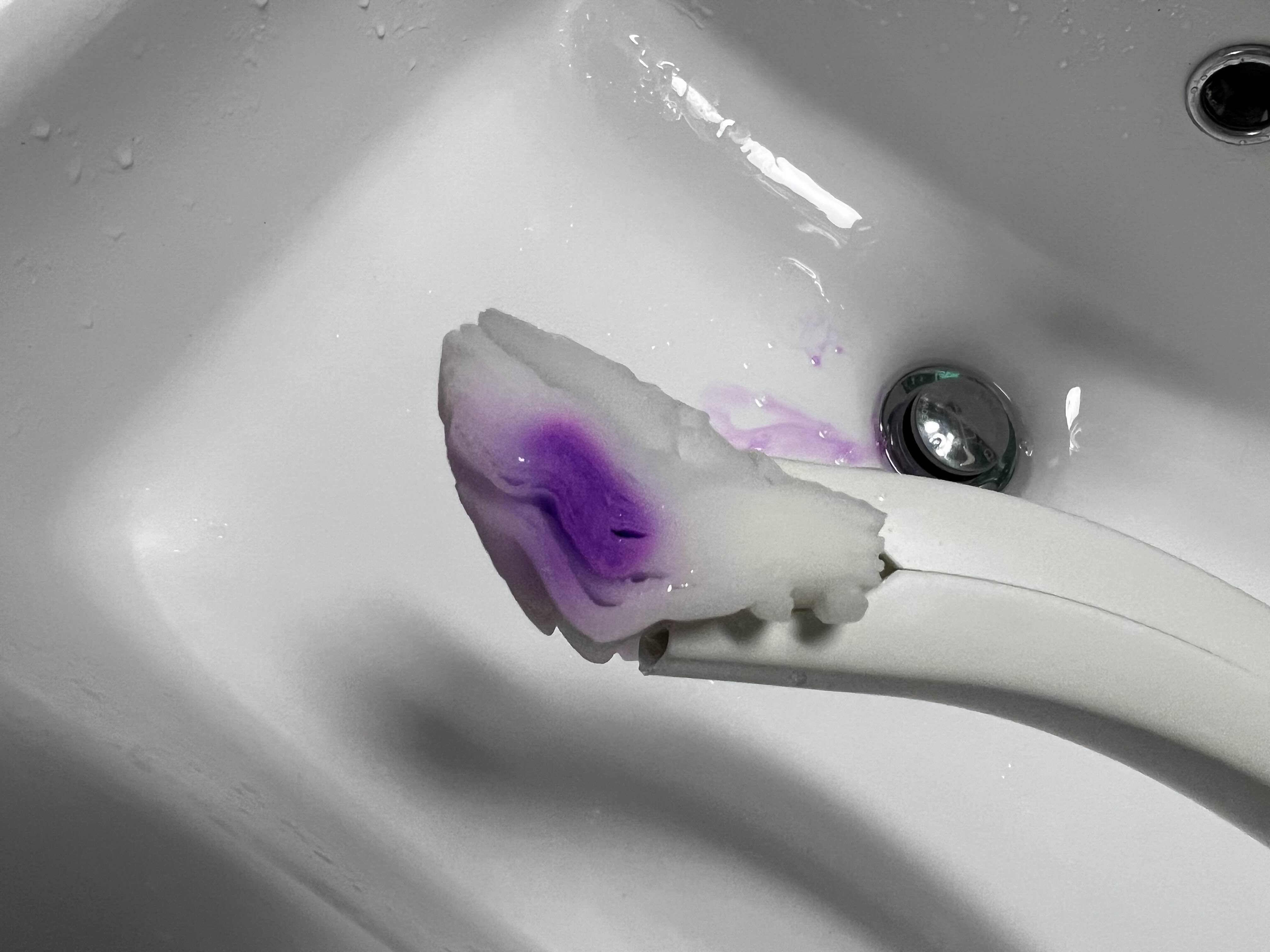 물 묻히면 바로 보라색 물이 나온다
