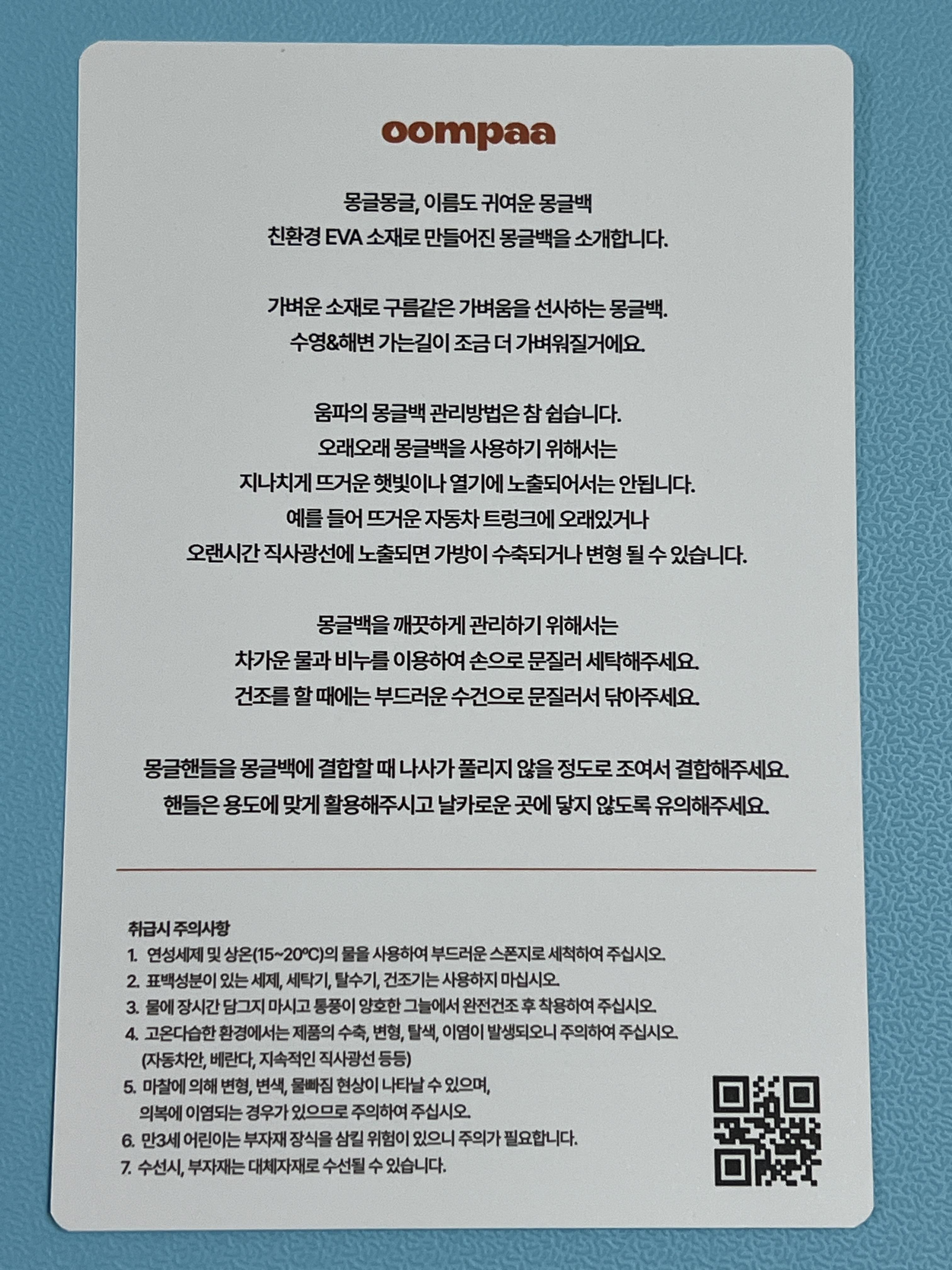 움파의 몽글백 관리방법은 참 쉽습니다.