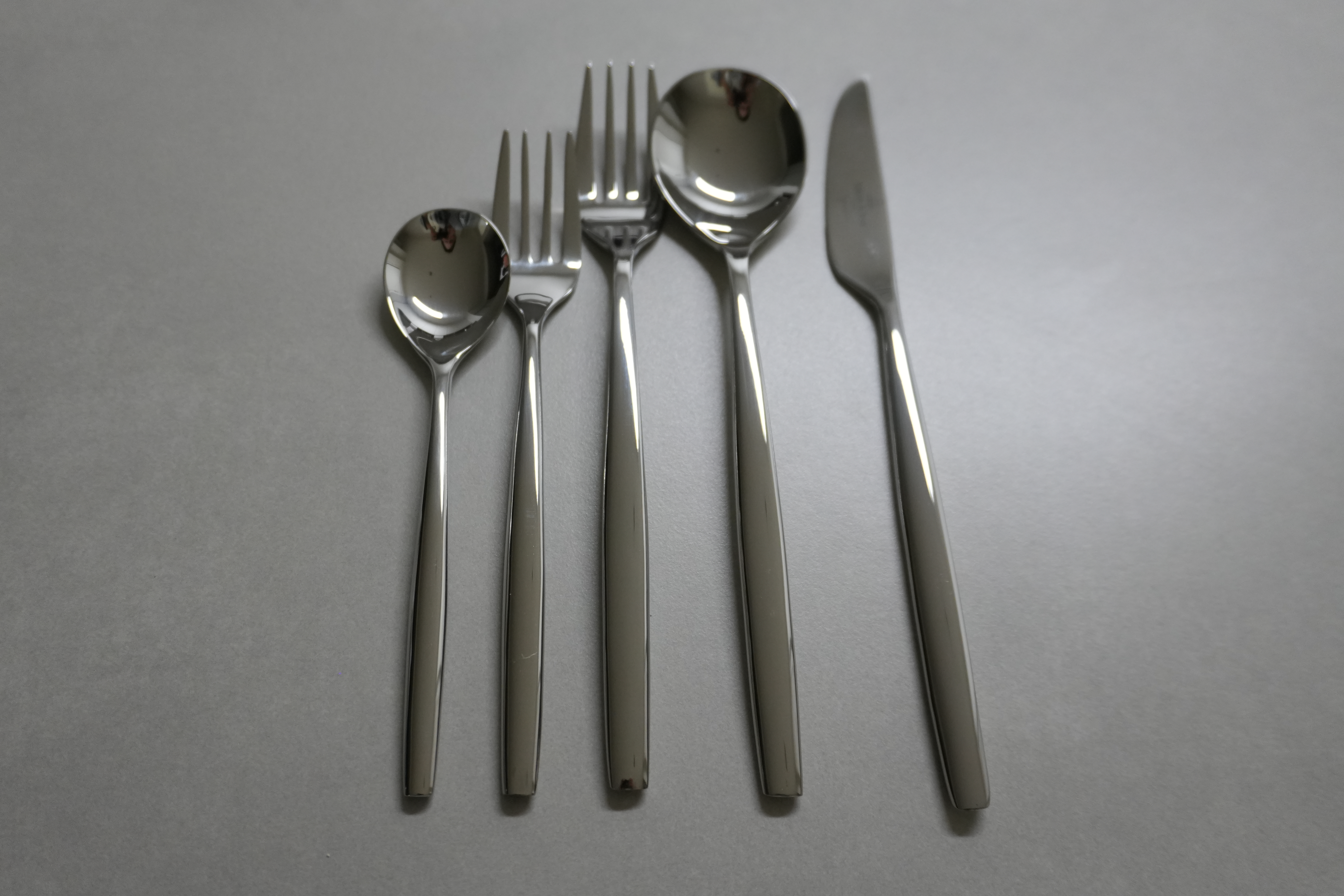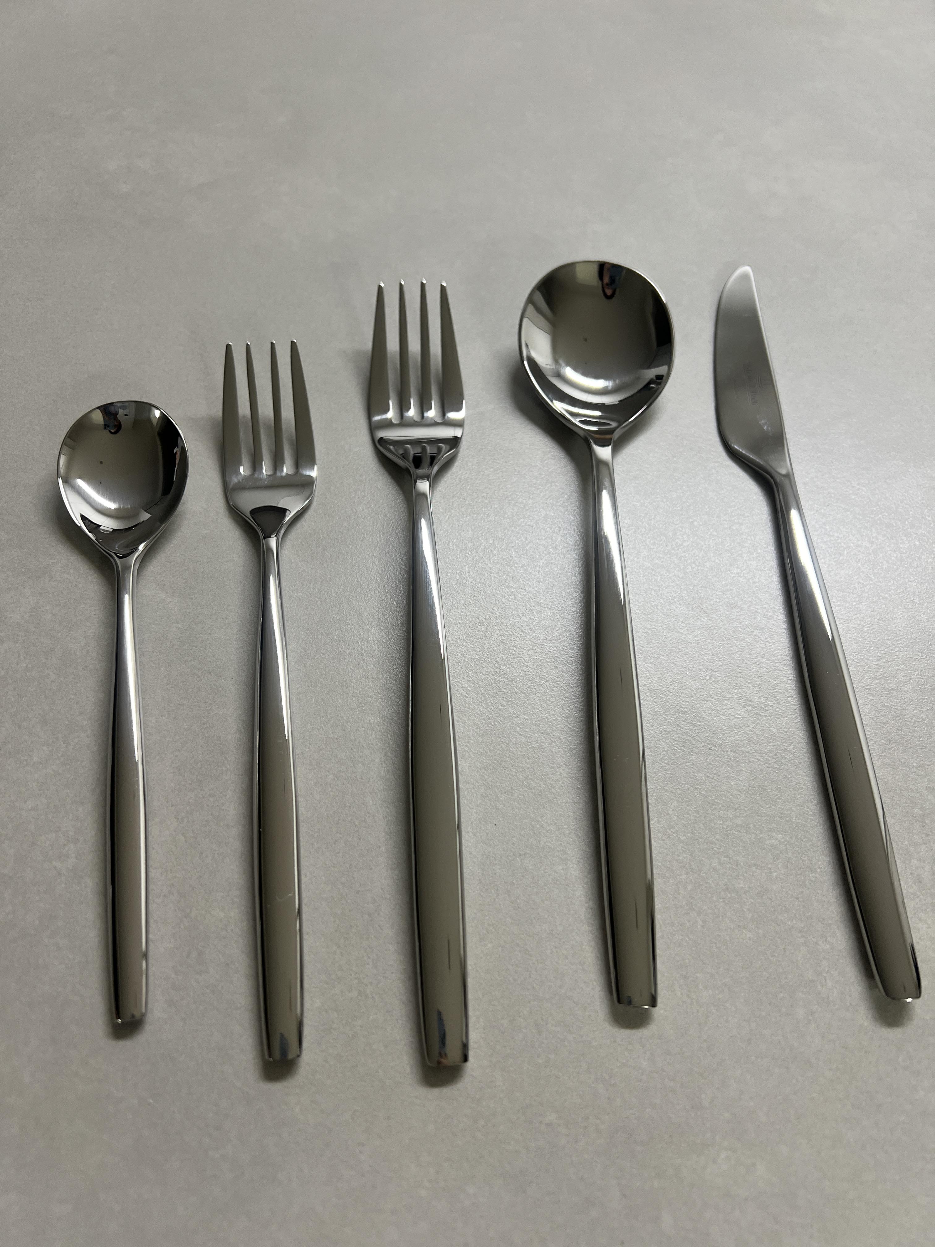 디저트 스푼, 디저트 포크, 디너 포크, 디너 스푼, 디너 나이프 5종으로 되어있다.