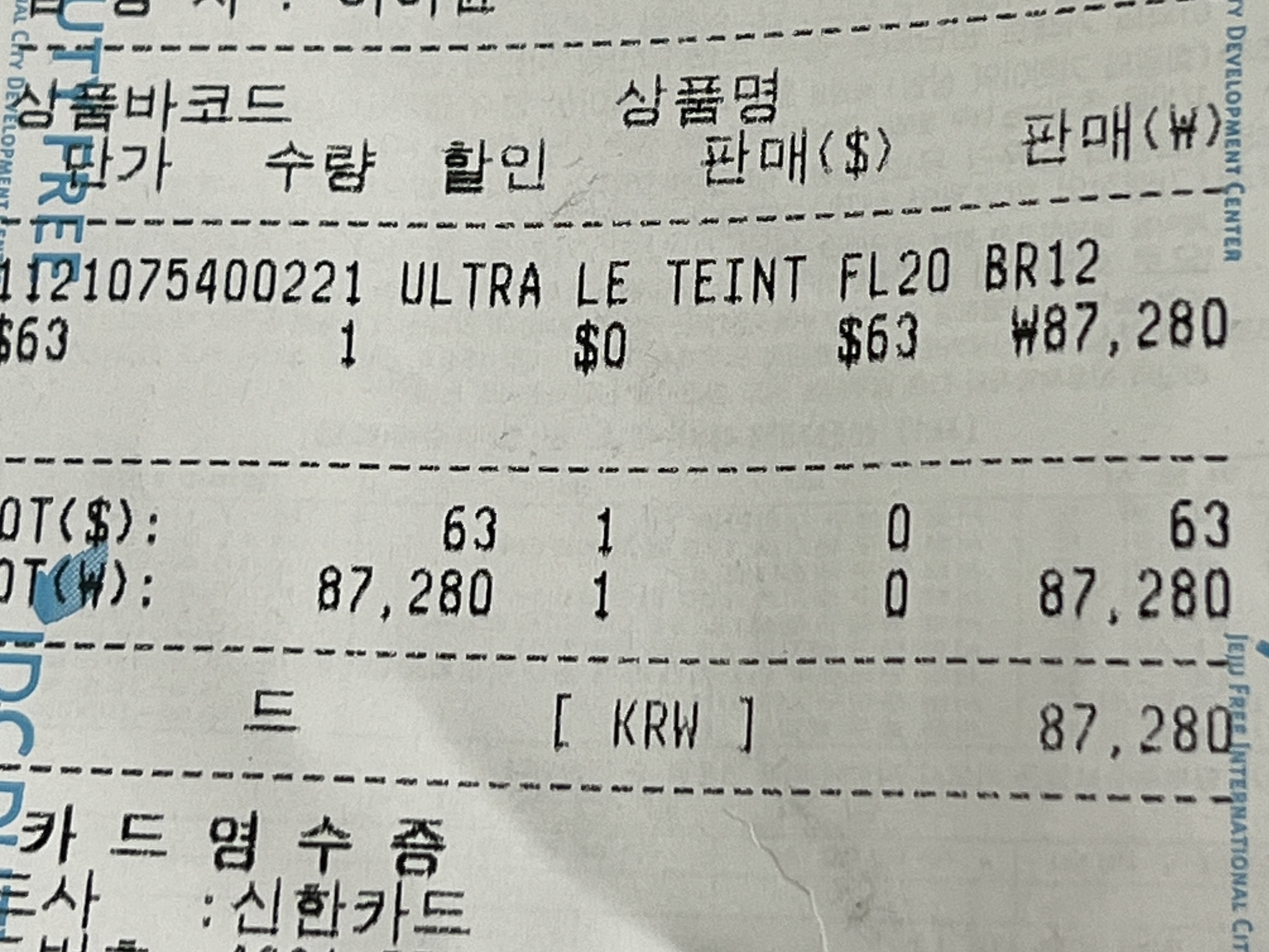 면세에서 샤넬 울트라르뗑 파운데이션 구매하고... 약 8만 7천원으로, 백화점 정가보다 5천원 정도 저렴함