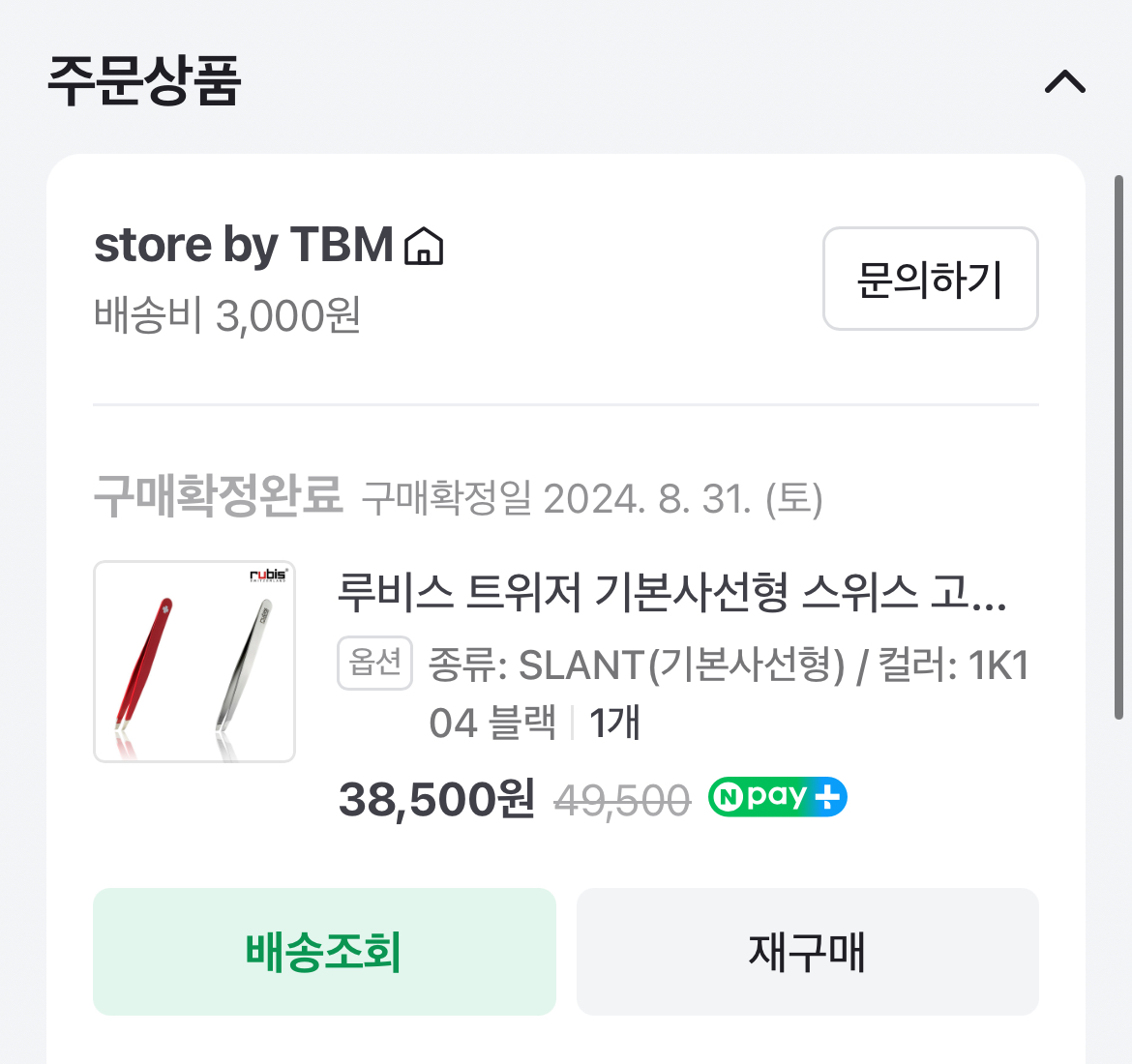 루비스 트위저 기본사선형 스위스 고급 눈썹정리 족집게 왁싱 쪽집게