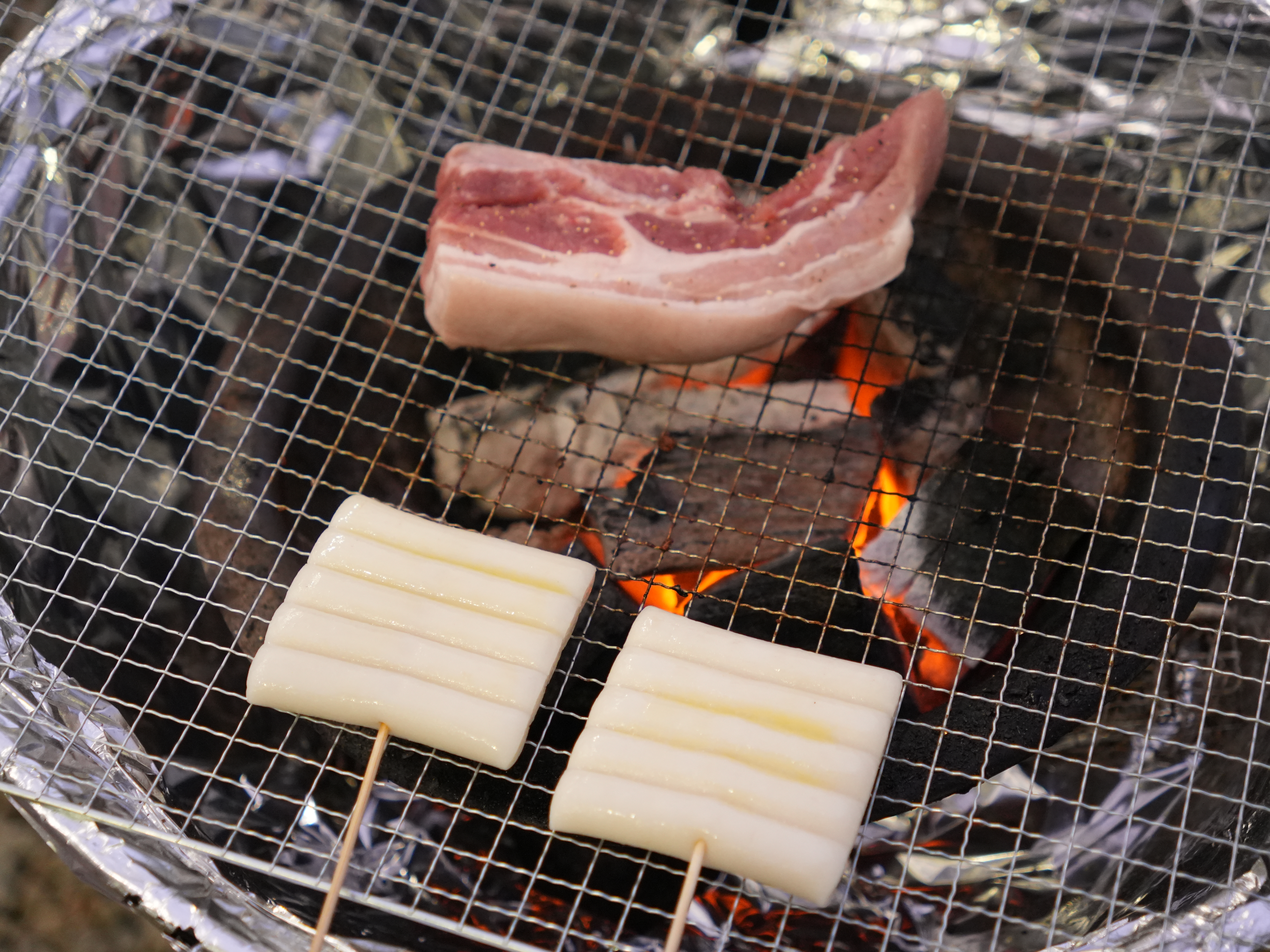 통삼겹살, 목살, 소세지, 떡꼬치 준비해감!!