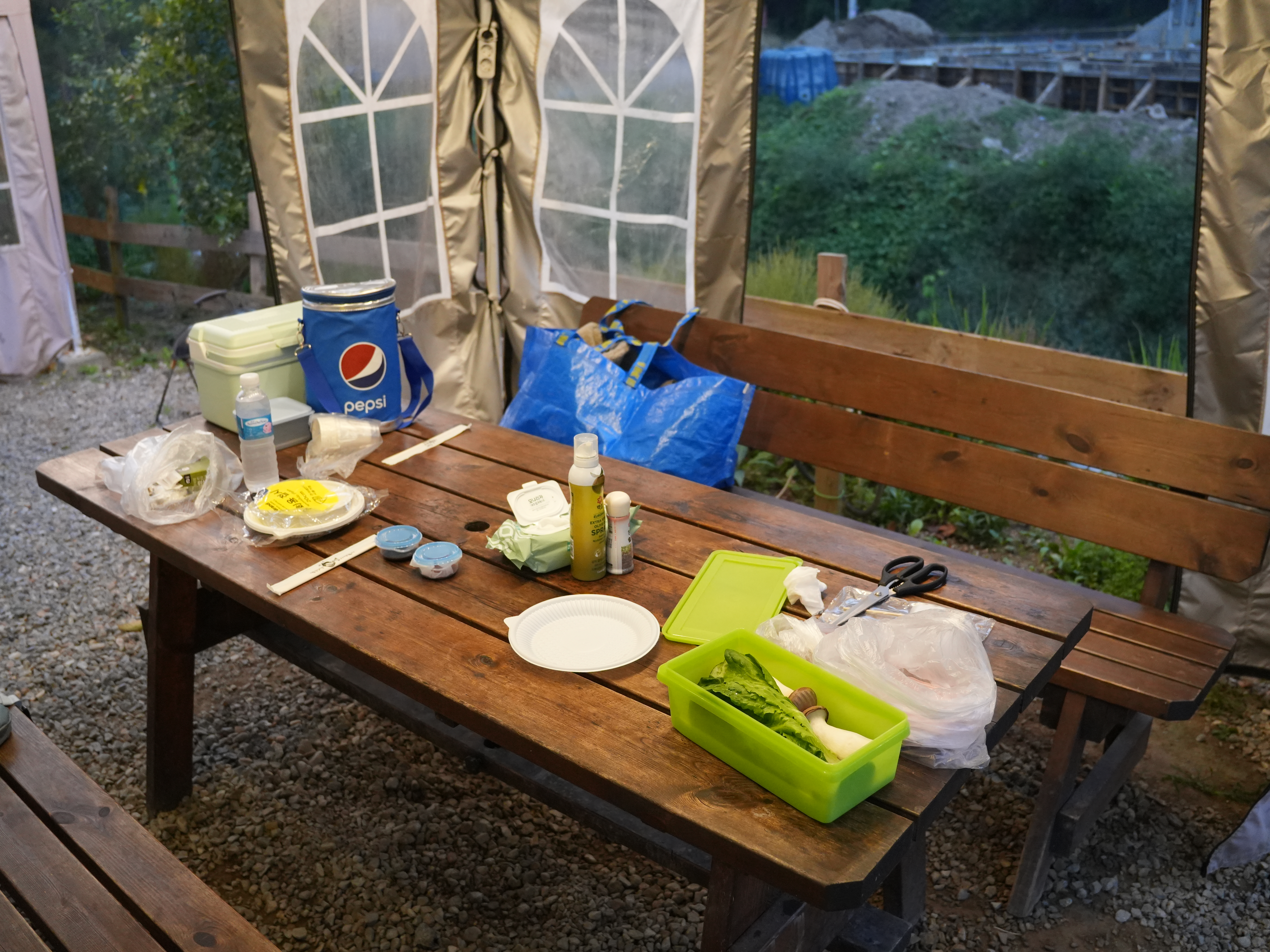 카페에는 일회용품과 라면, 과자, 쌈장, 고추장, 부탄가스, 목장갑, 등등을 팔아서 사면 된다!!
