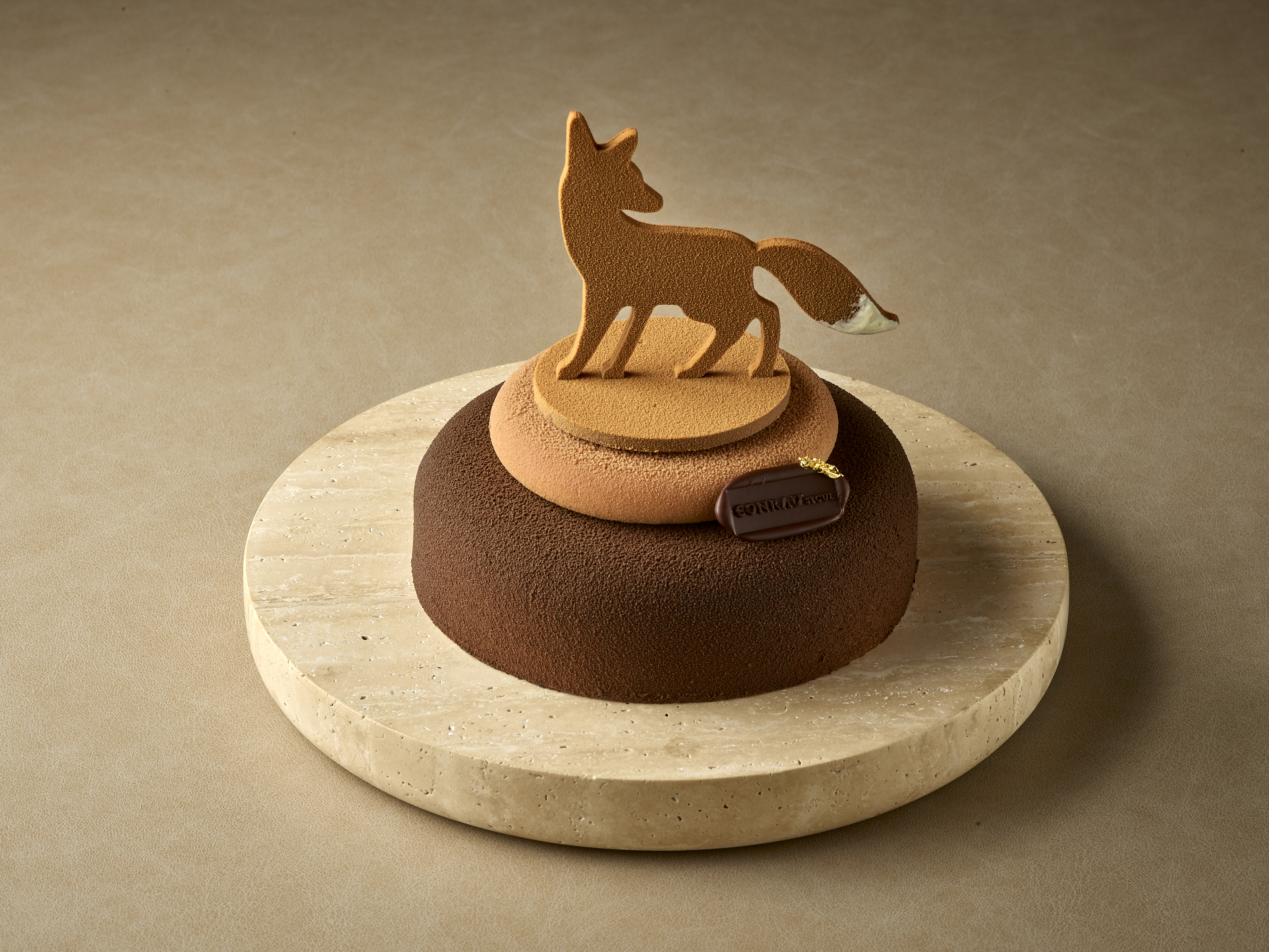우유의 풍부함과 진한 코코아 향을 가진 후캄비 초콜릿으로 만든 무스와 고소하고 바삭한 식감의 마카다미아 로쉐, 향긋하고 진한 헤이즐넛 프랄린, 촉촉하고 부드러운 초콜릿 수플레가 들어간 콘래드 서울만의 시그니처 트리 케이크 입니다.