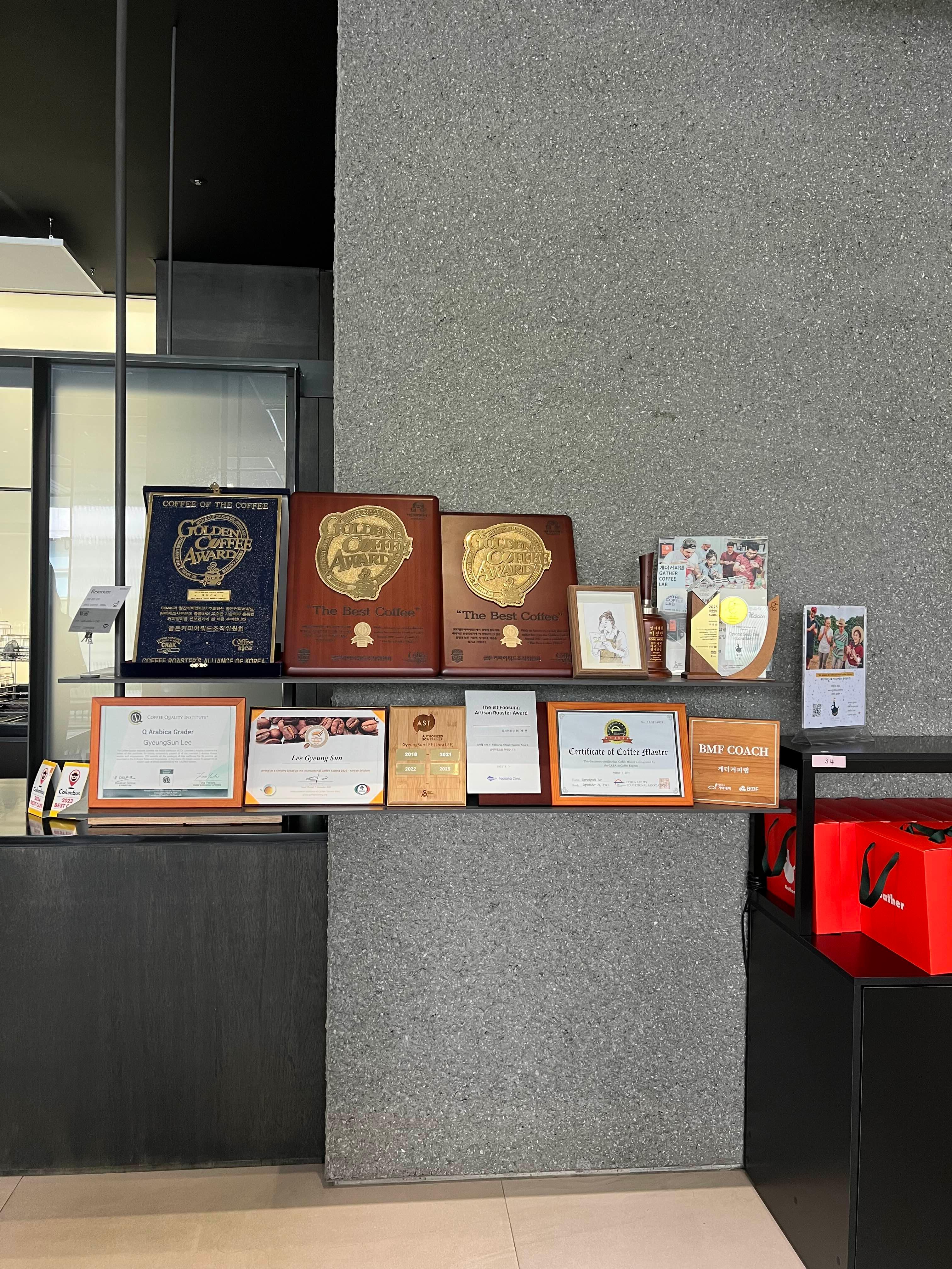무슨 자격증? 상장? 이런 것도 쭈르륵 전시도 되어있고 캡슐커피도 판매 중 이었다!!