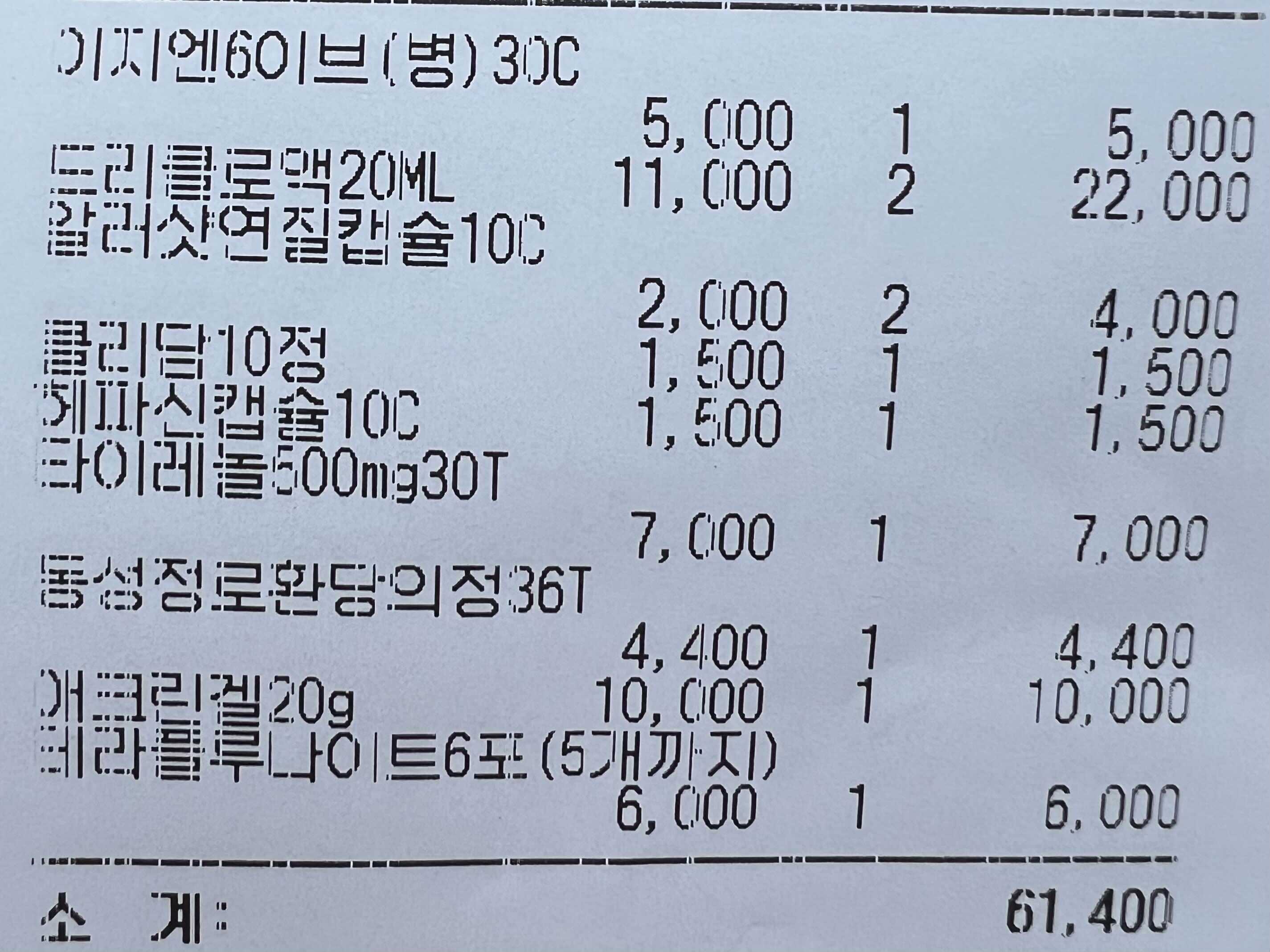 다해서 61,400원 나왔다!
