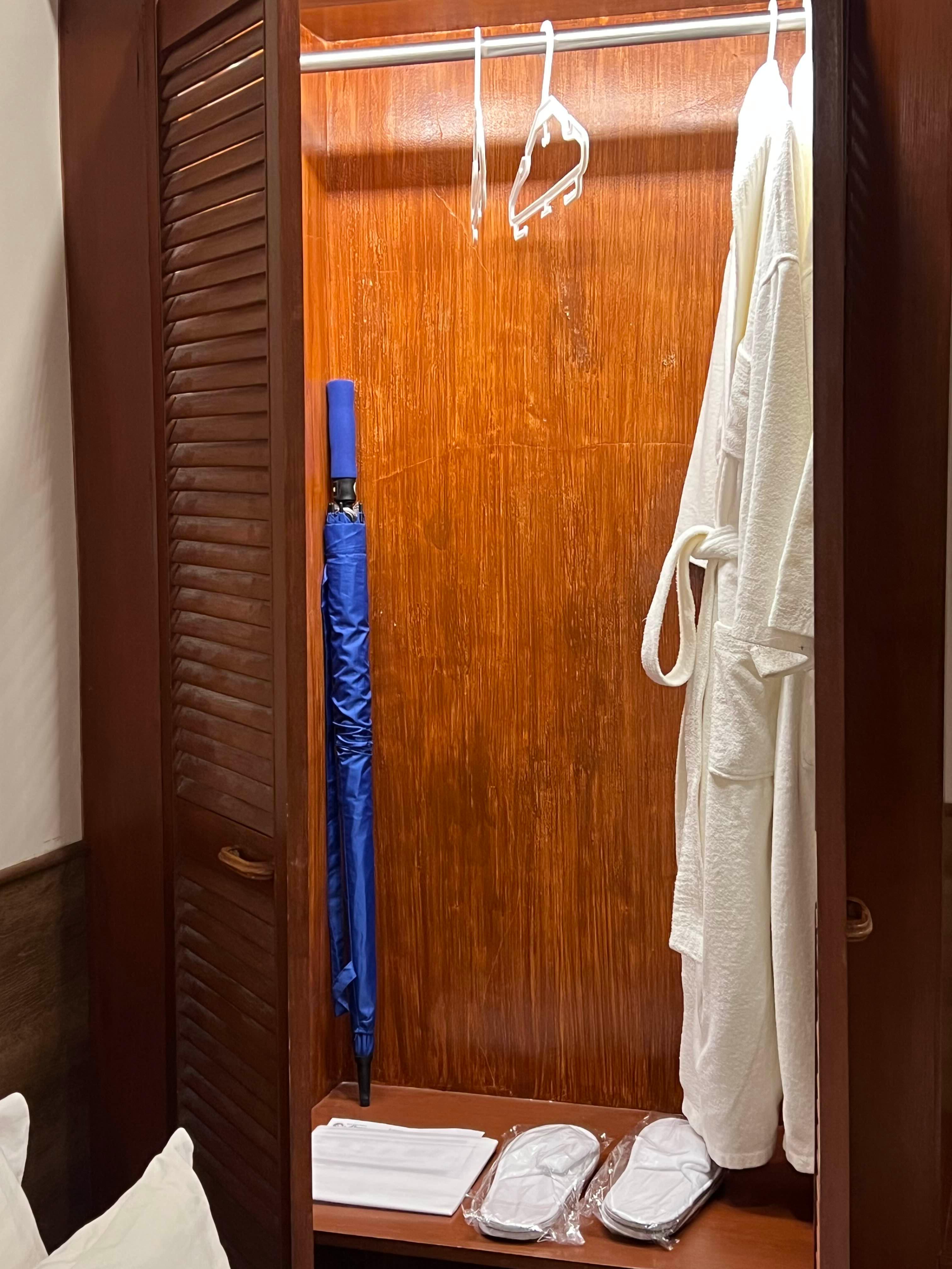 겁나 삐그덕 거리는 옷장에 그래도 가운이랑 실내화도 있는데