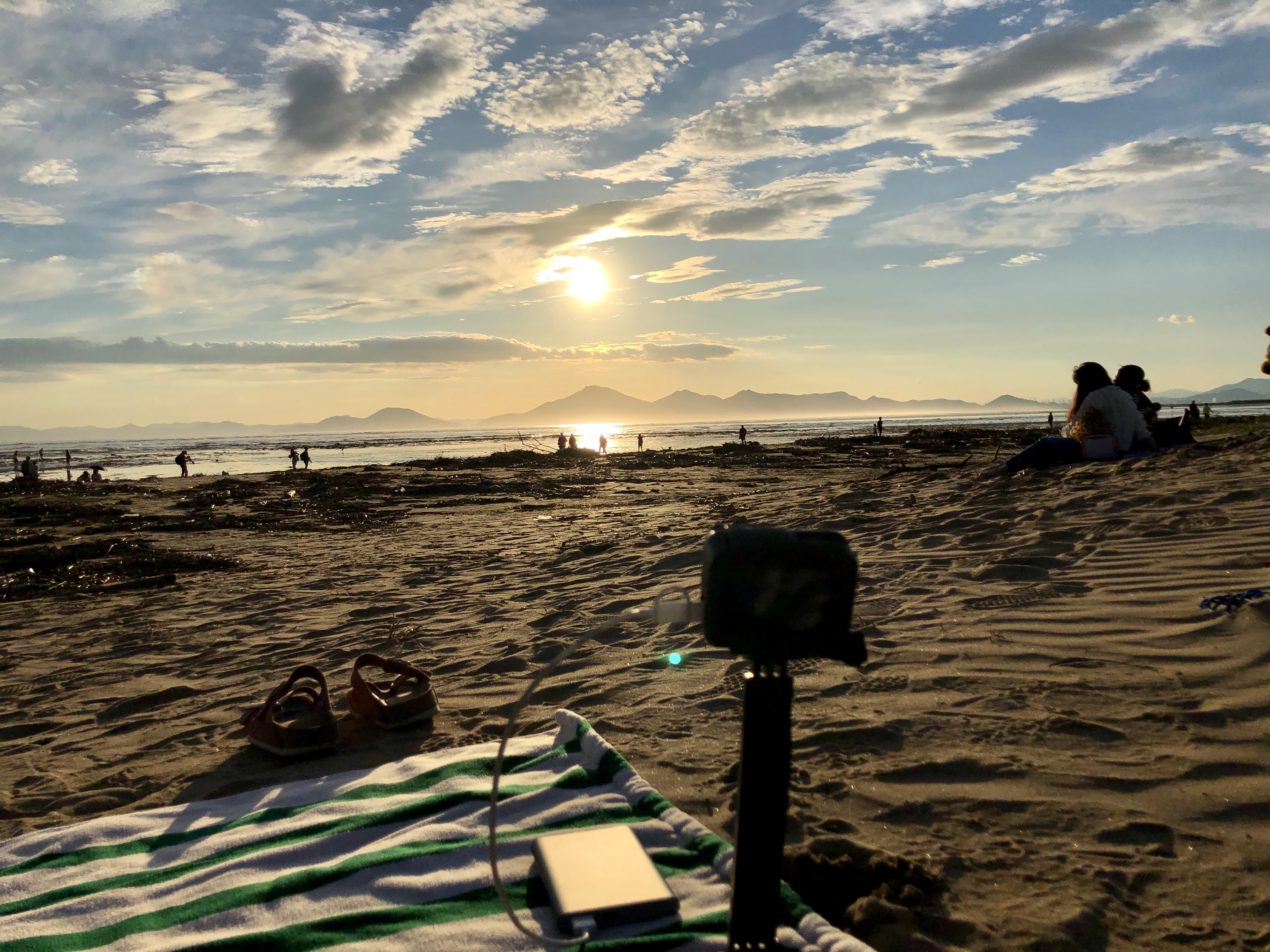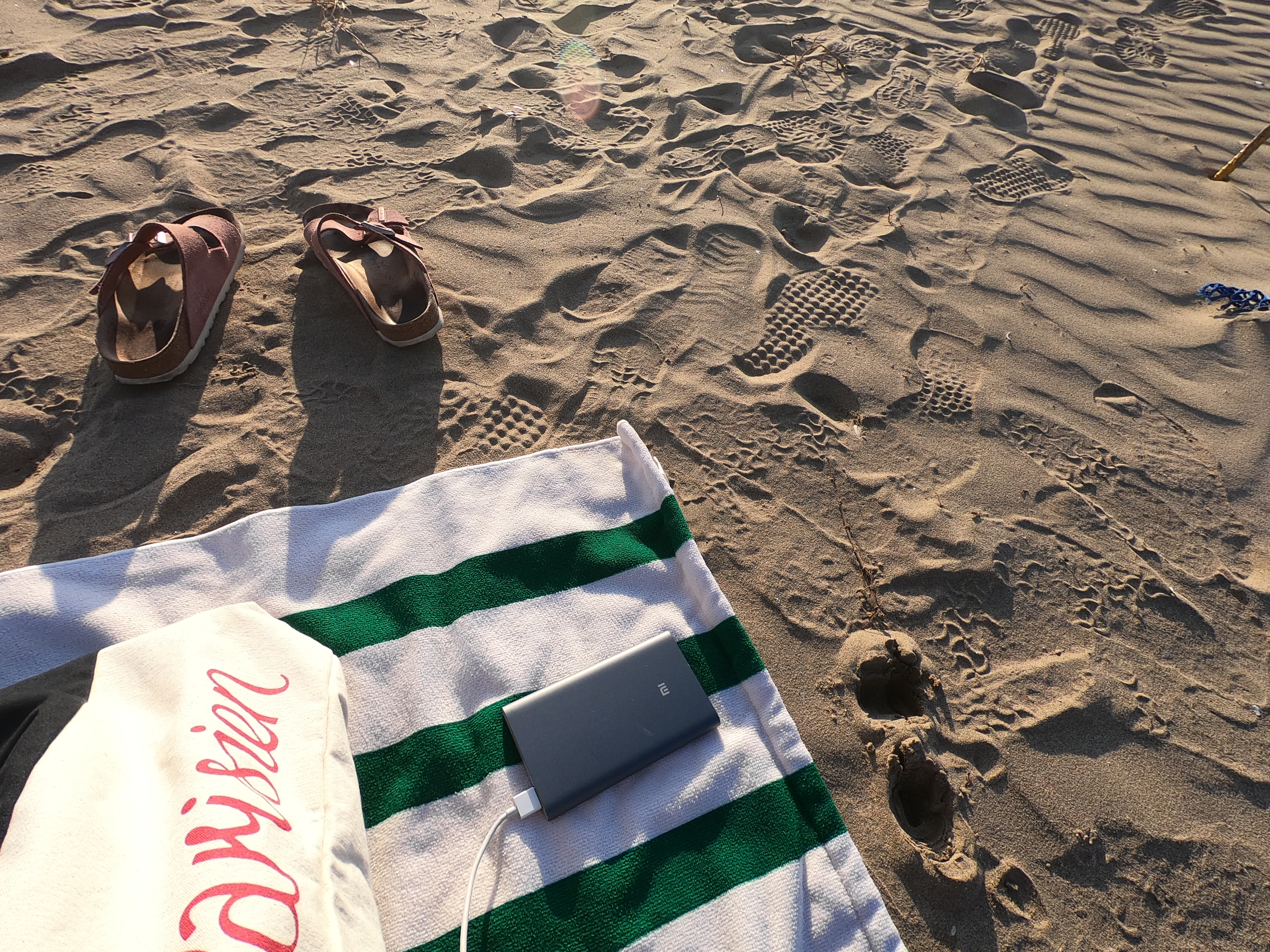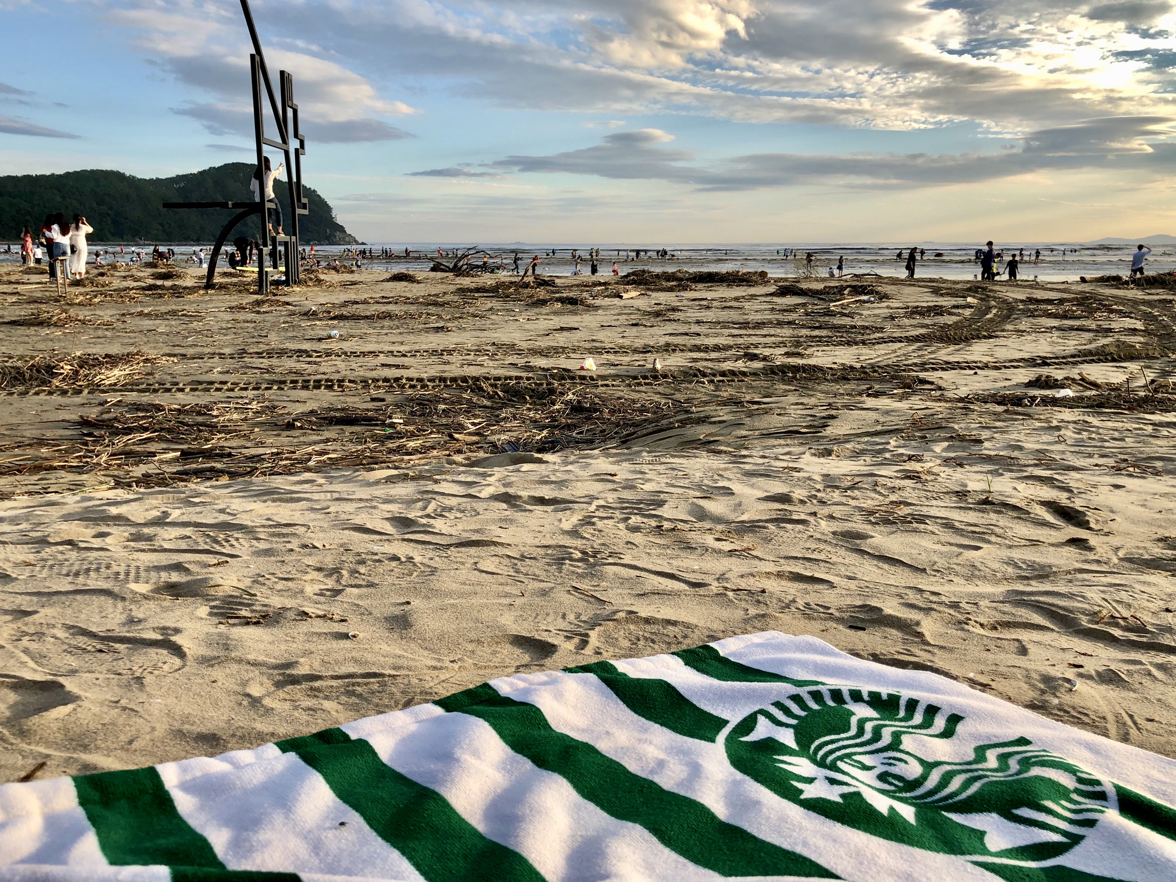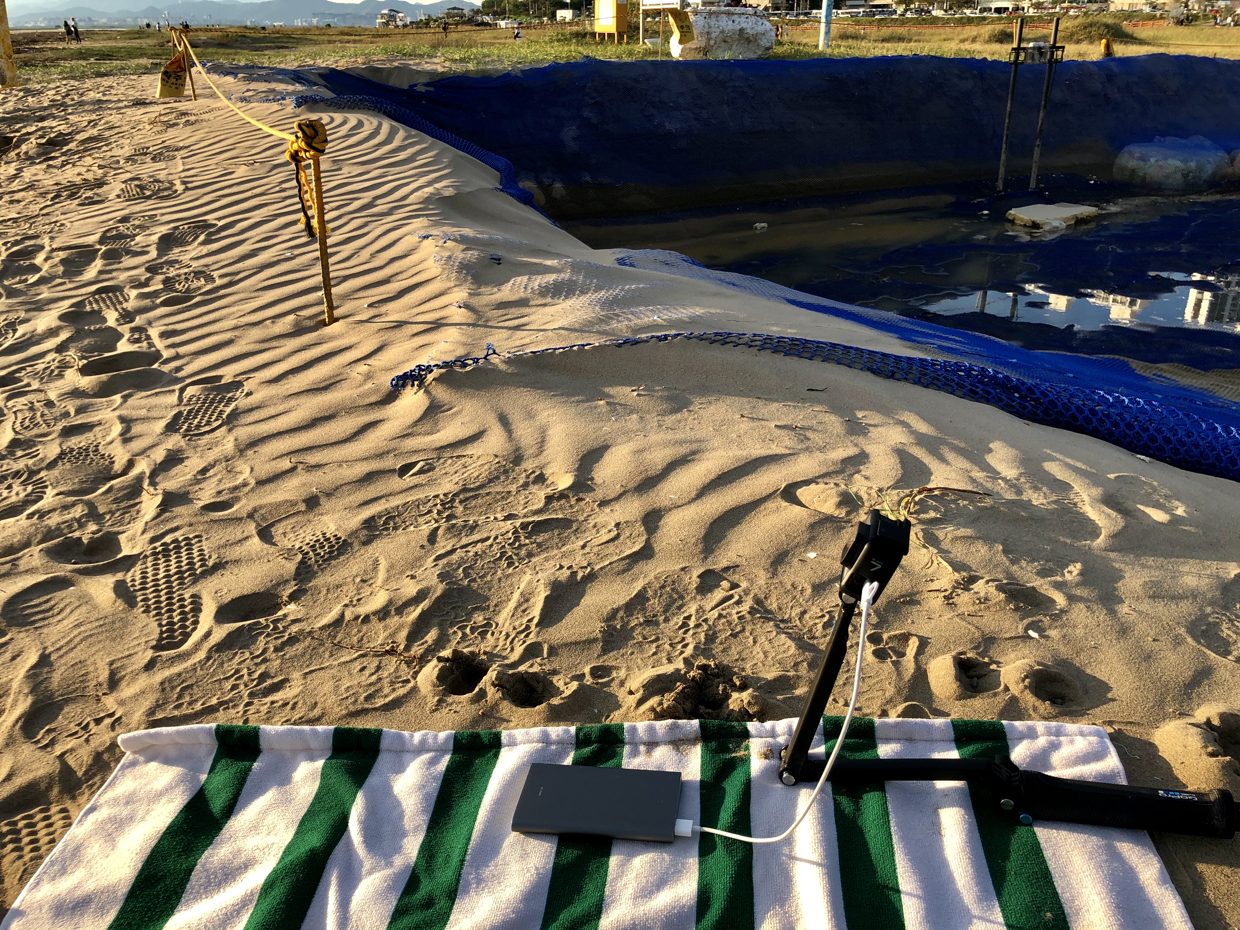 좀 걷다 보니 모래가 있길래 여기에 자리를 폄