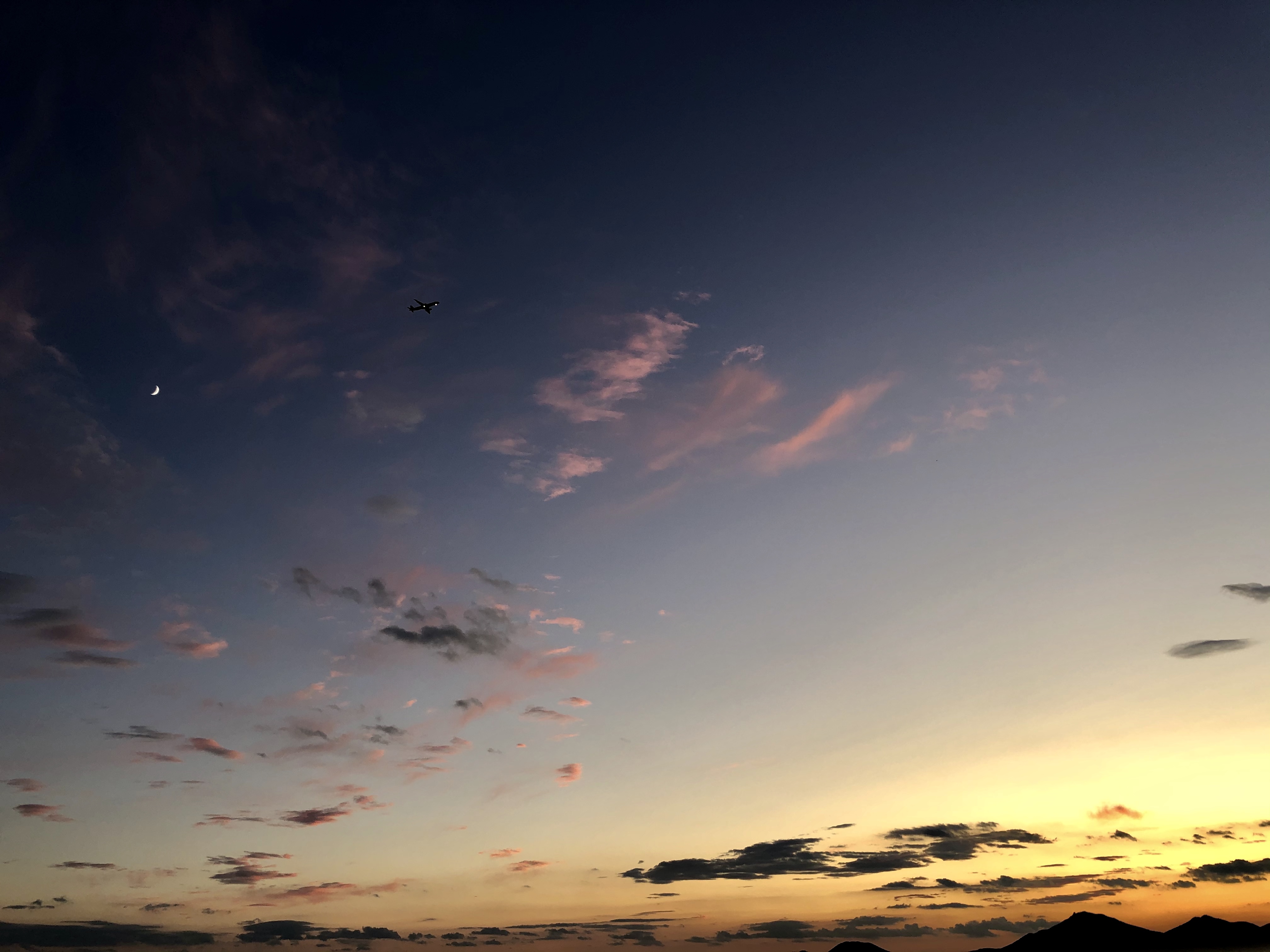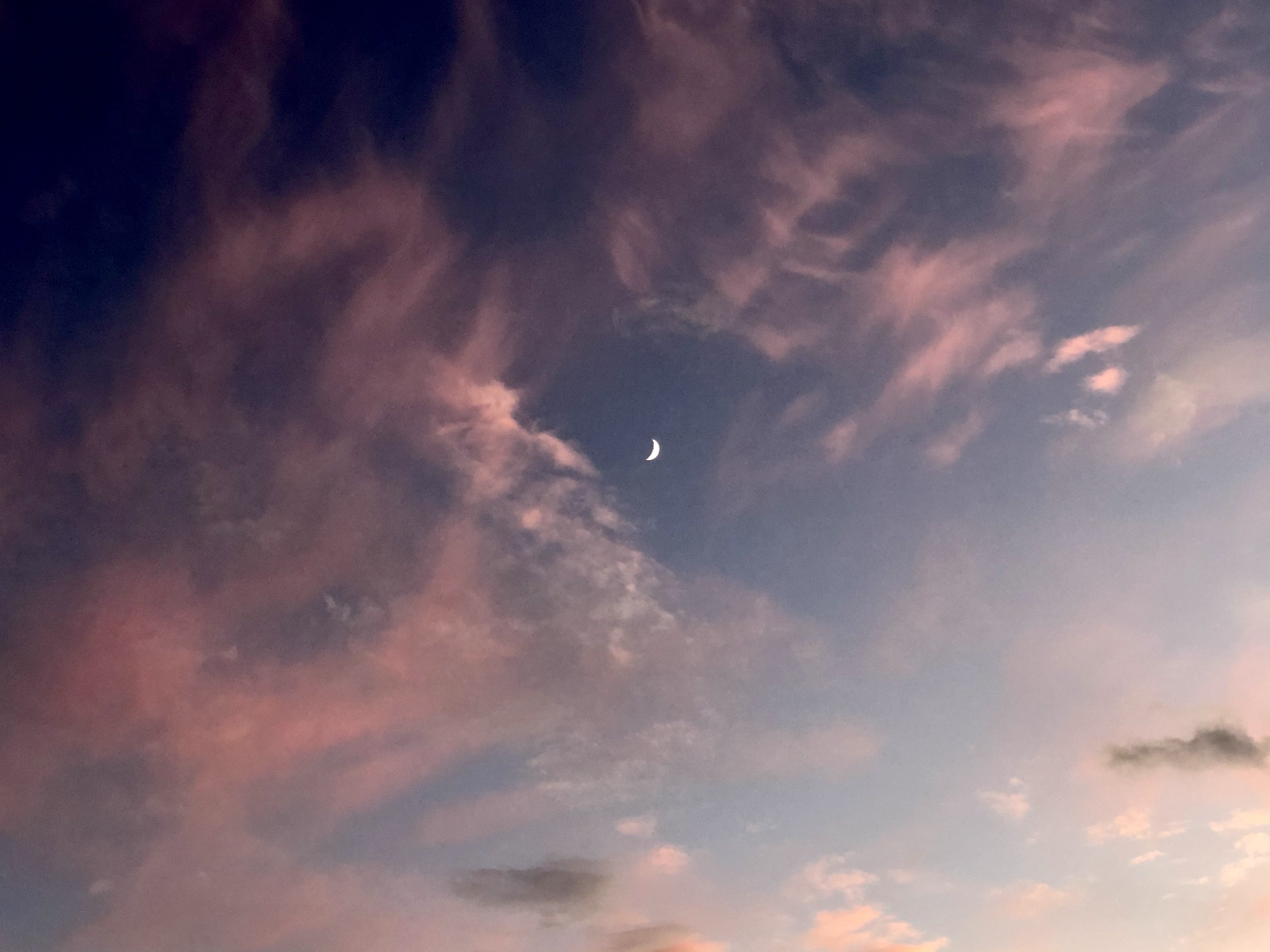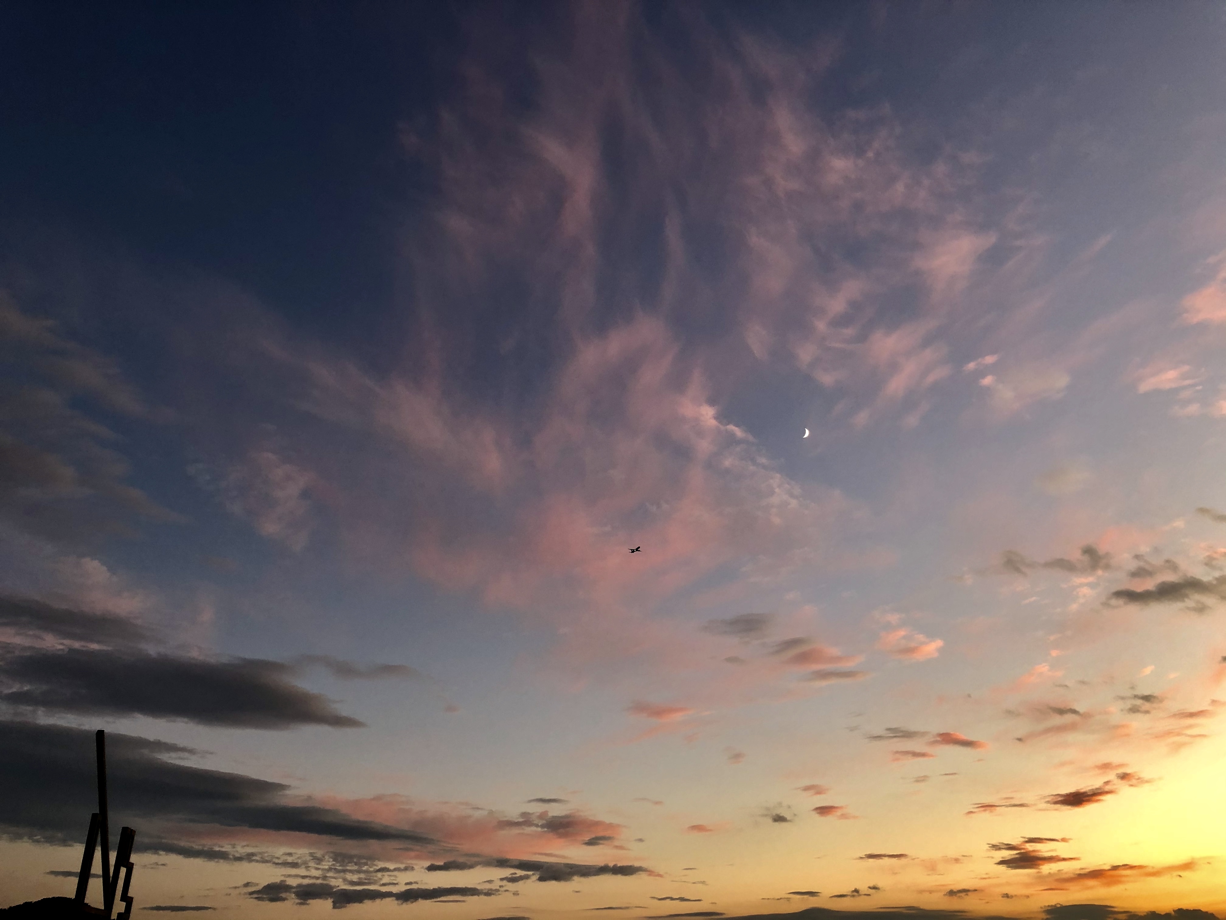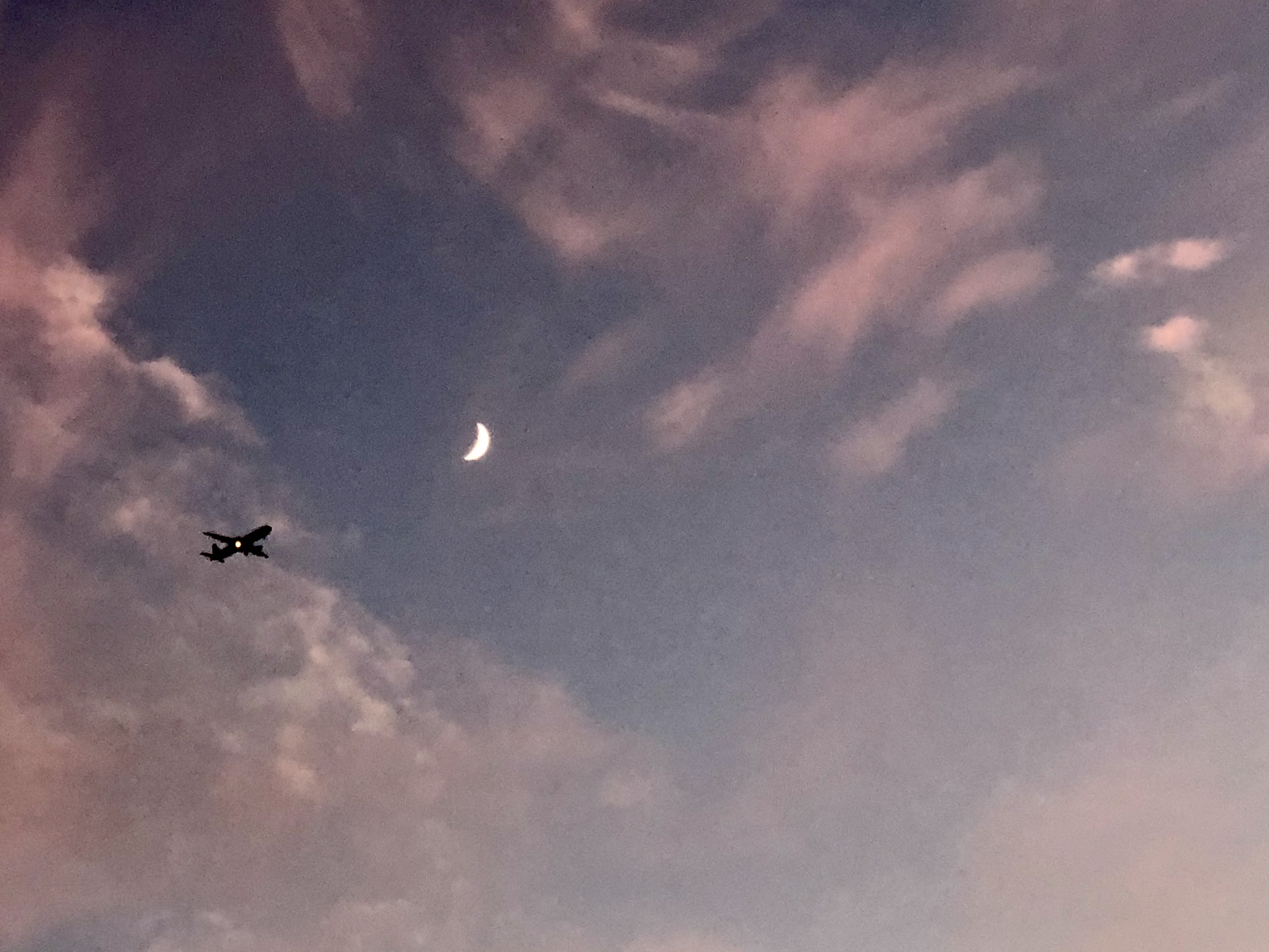 핑크 구름, 달, 비행기
