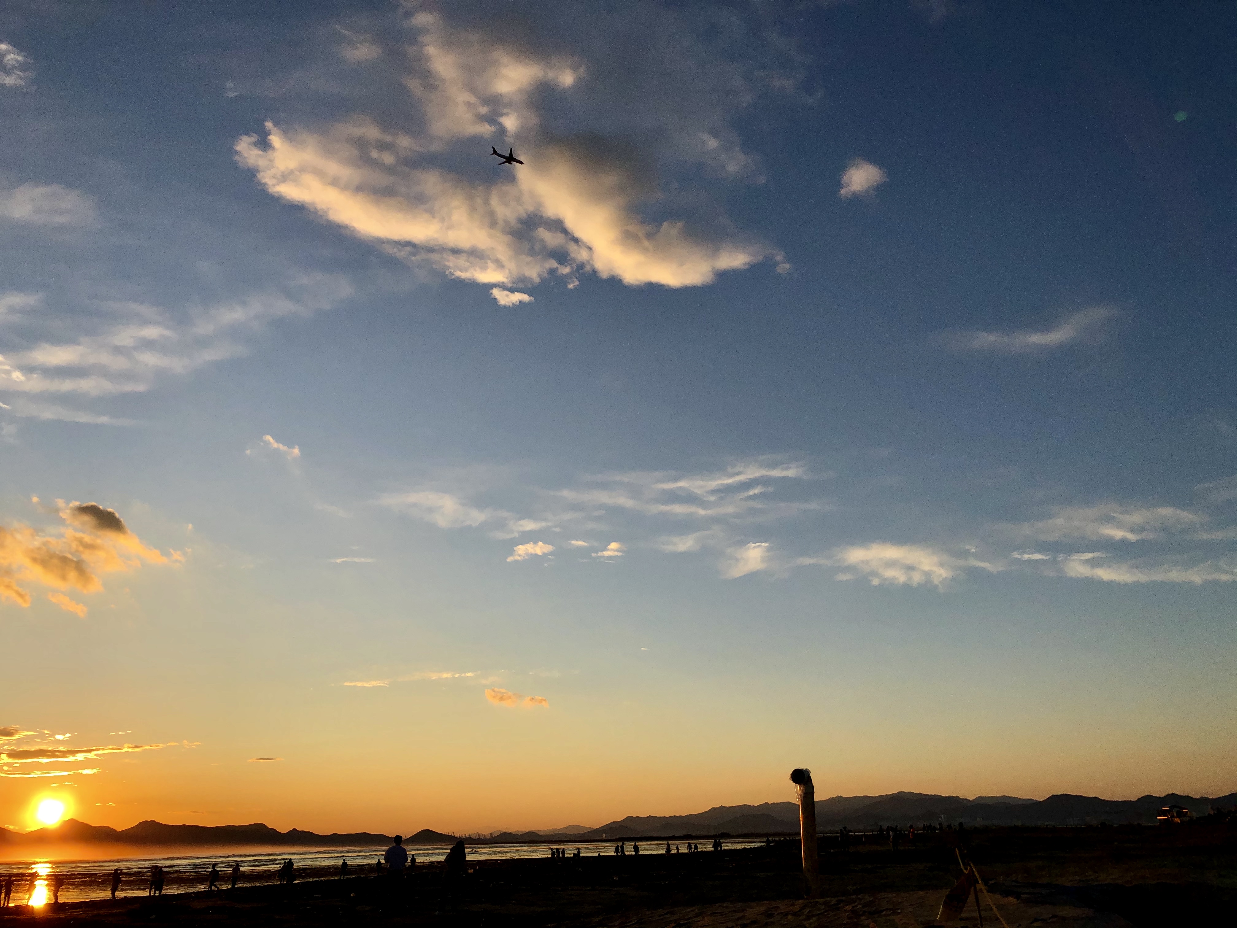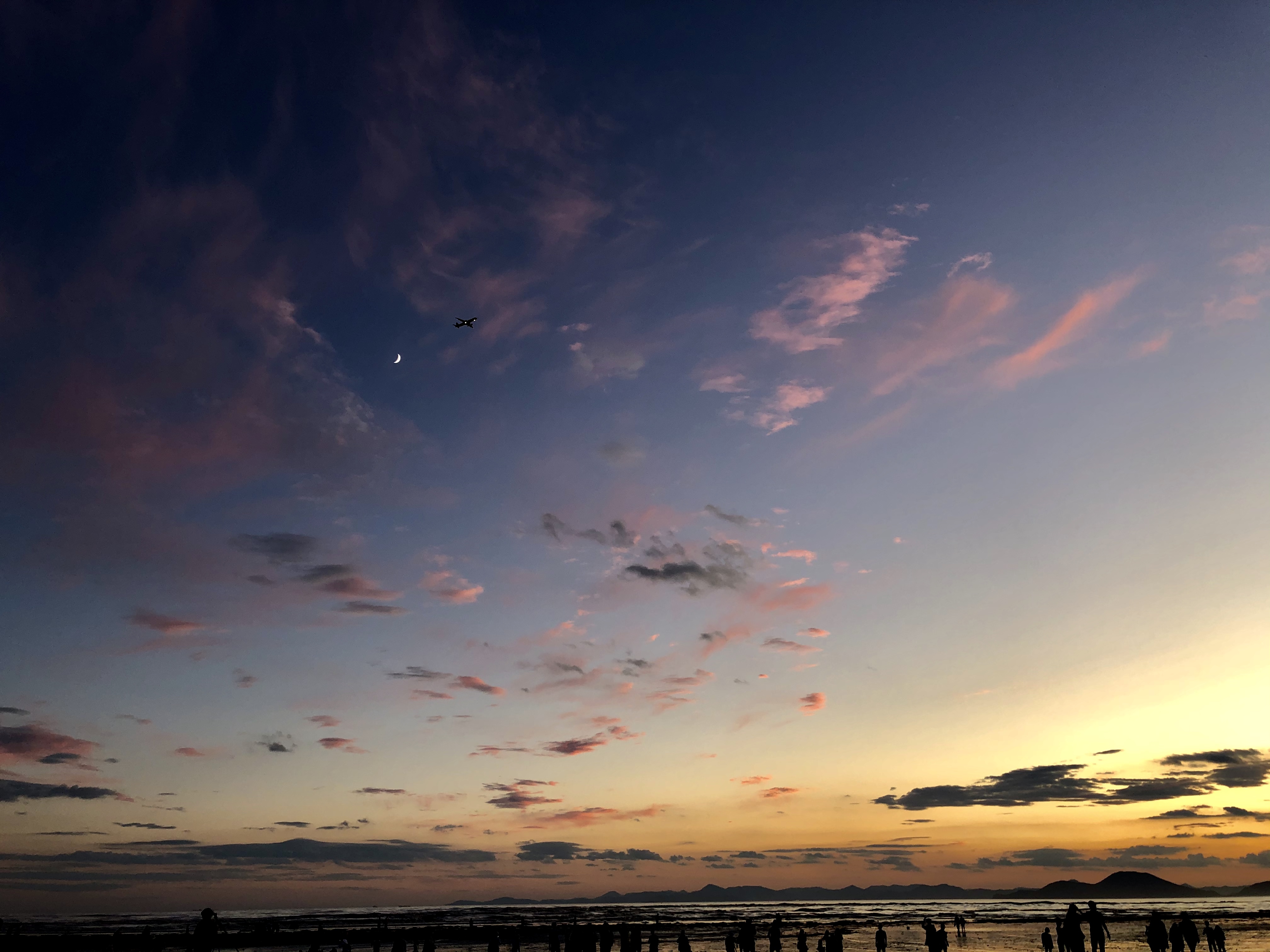 핑크구름, 달, 비행기, 노을까지..
