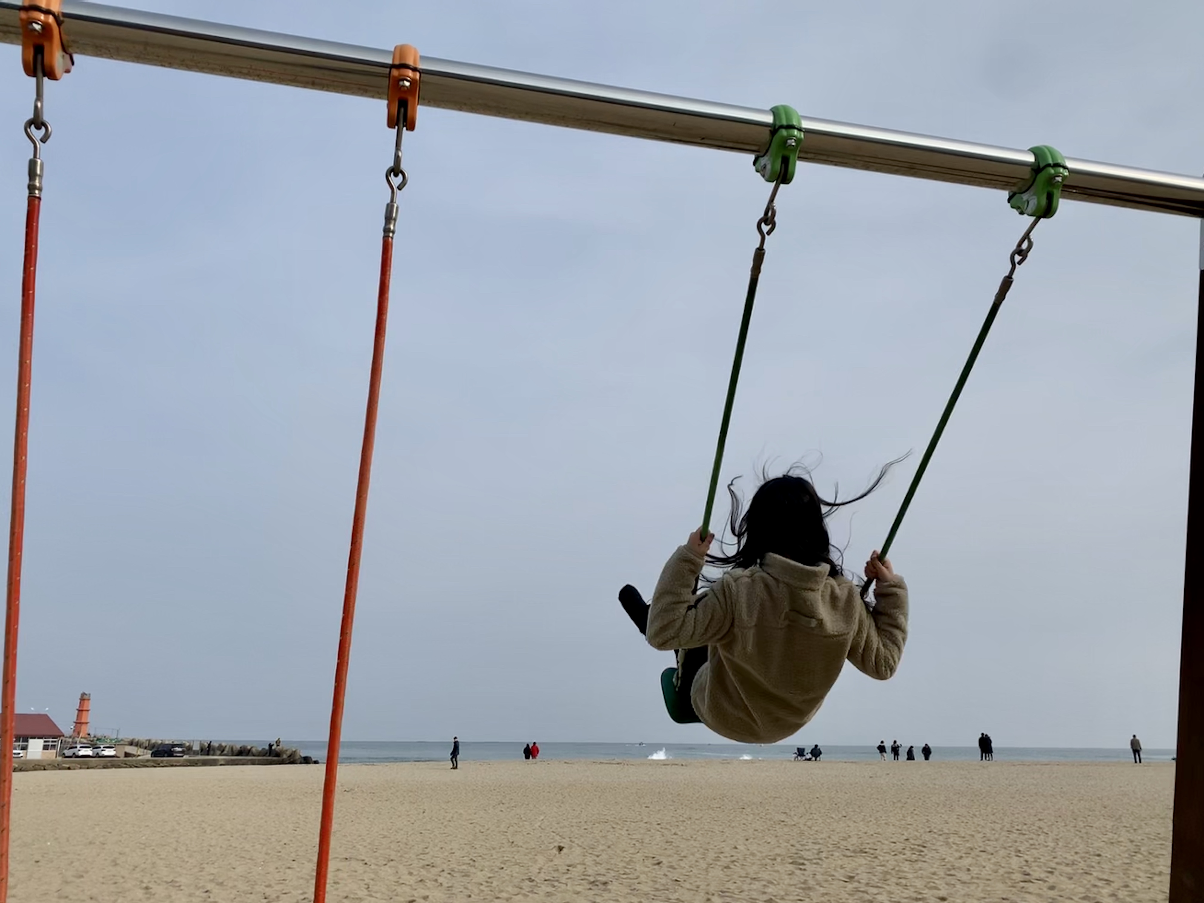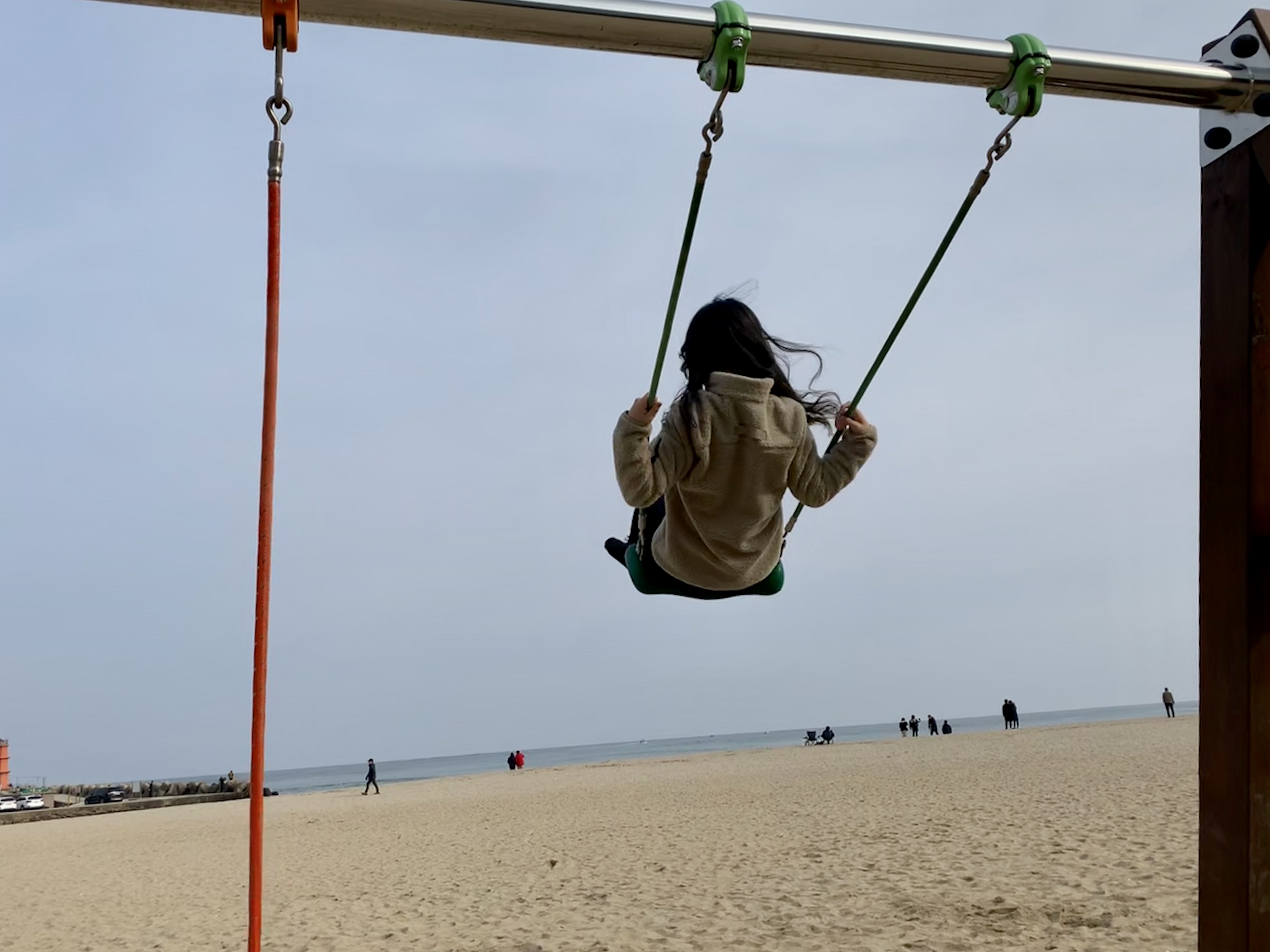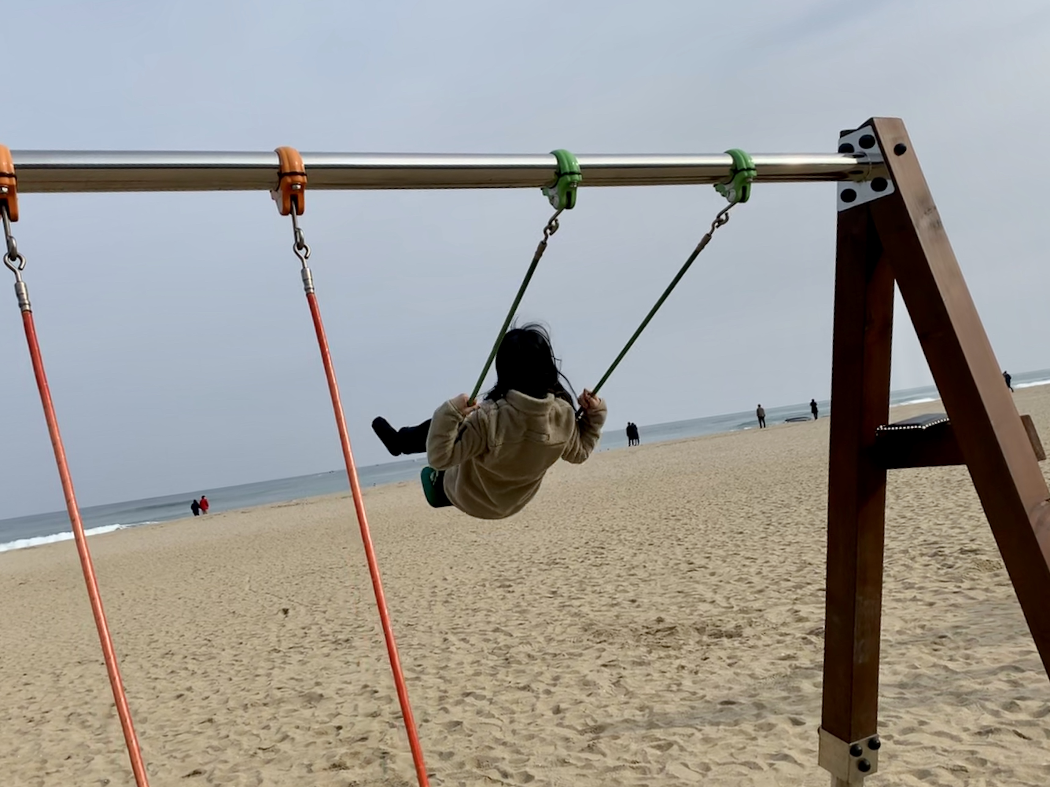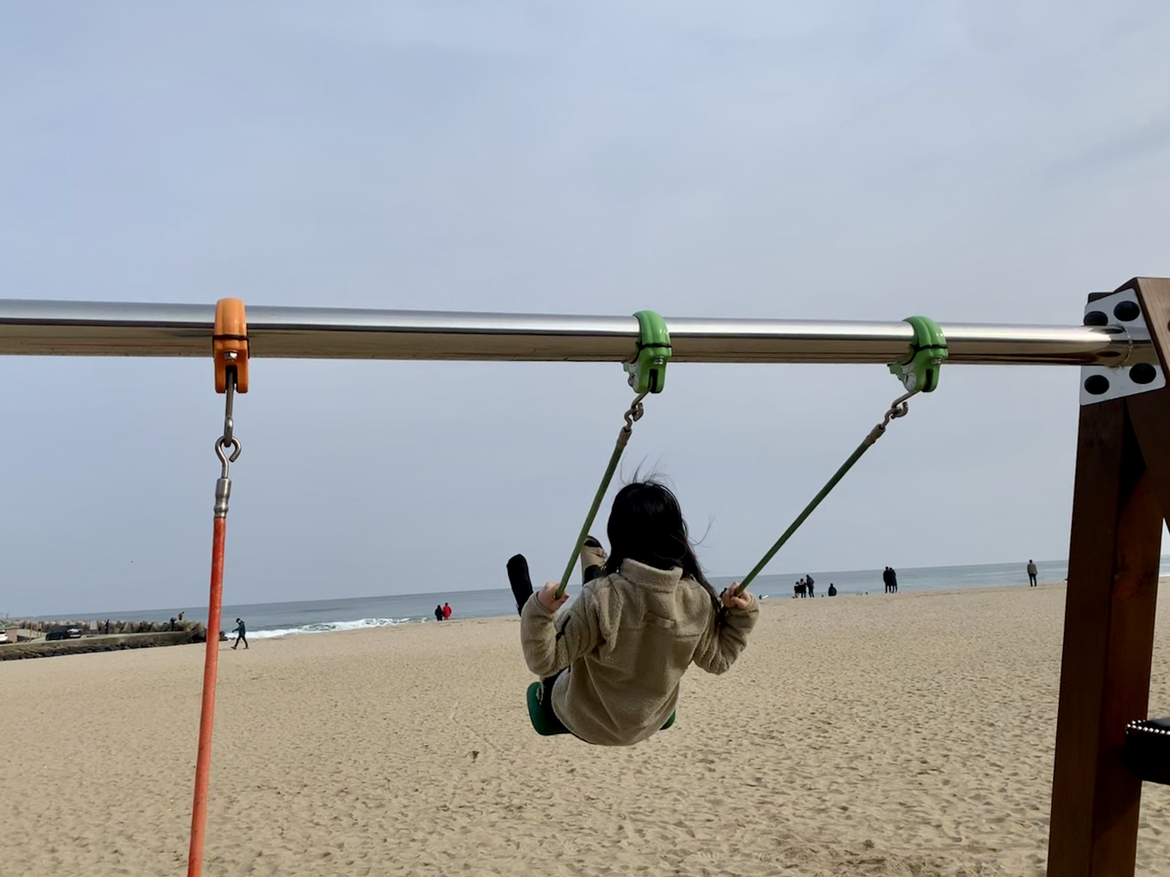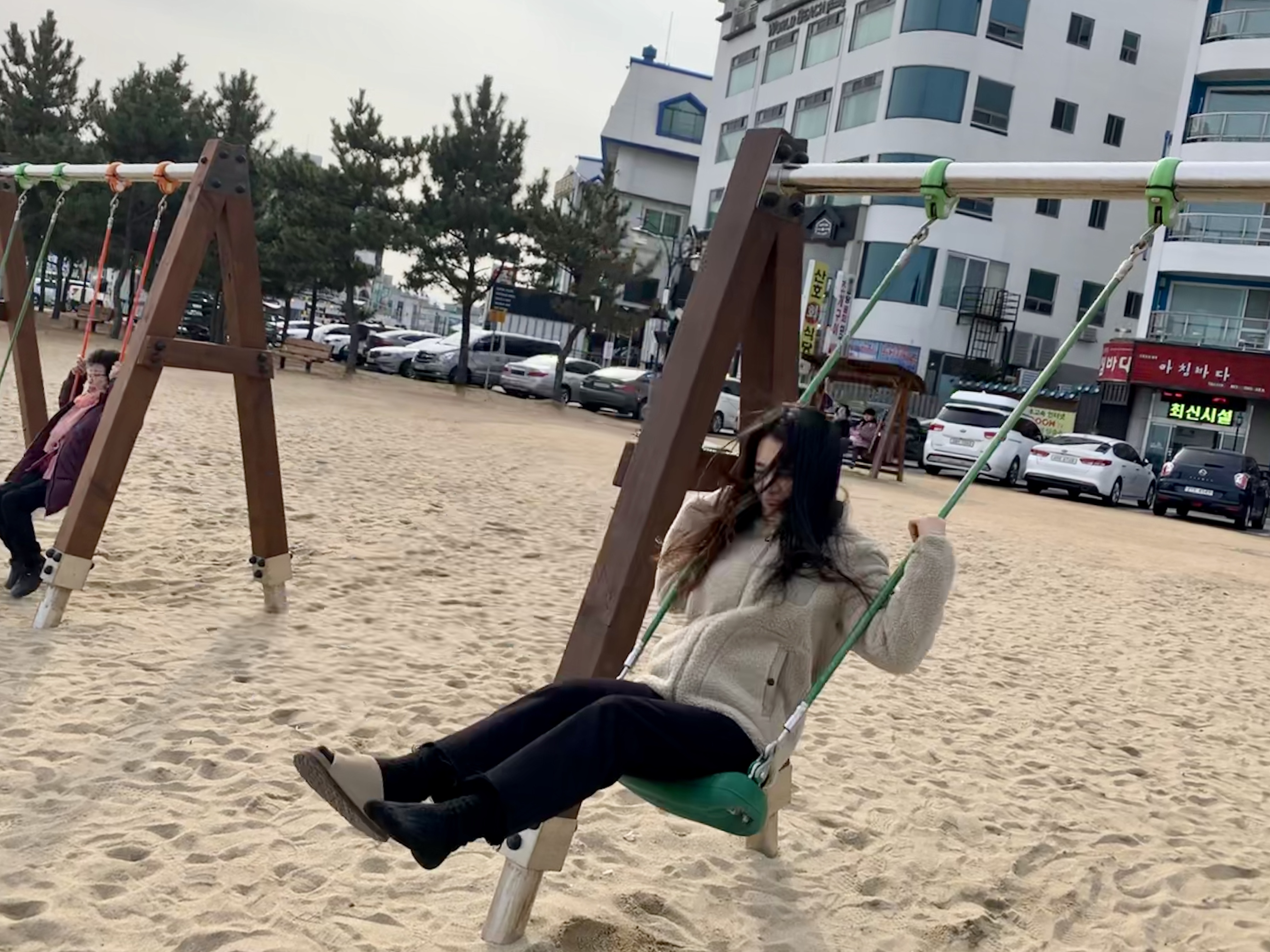 그러고 내려와서 그네 신나게 타기!!!
