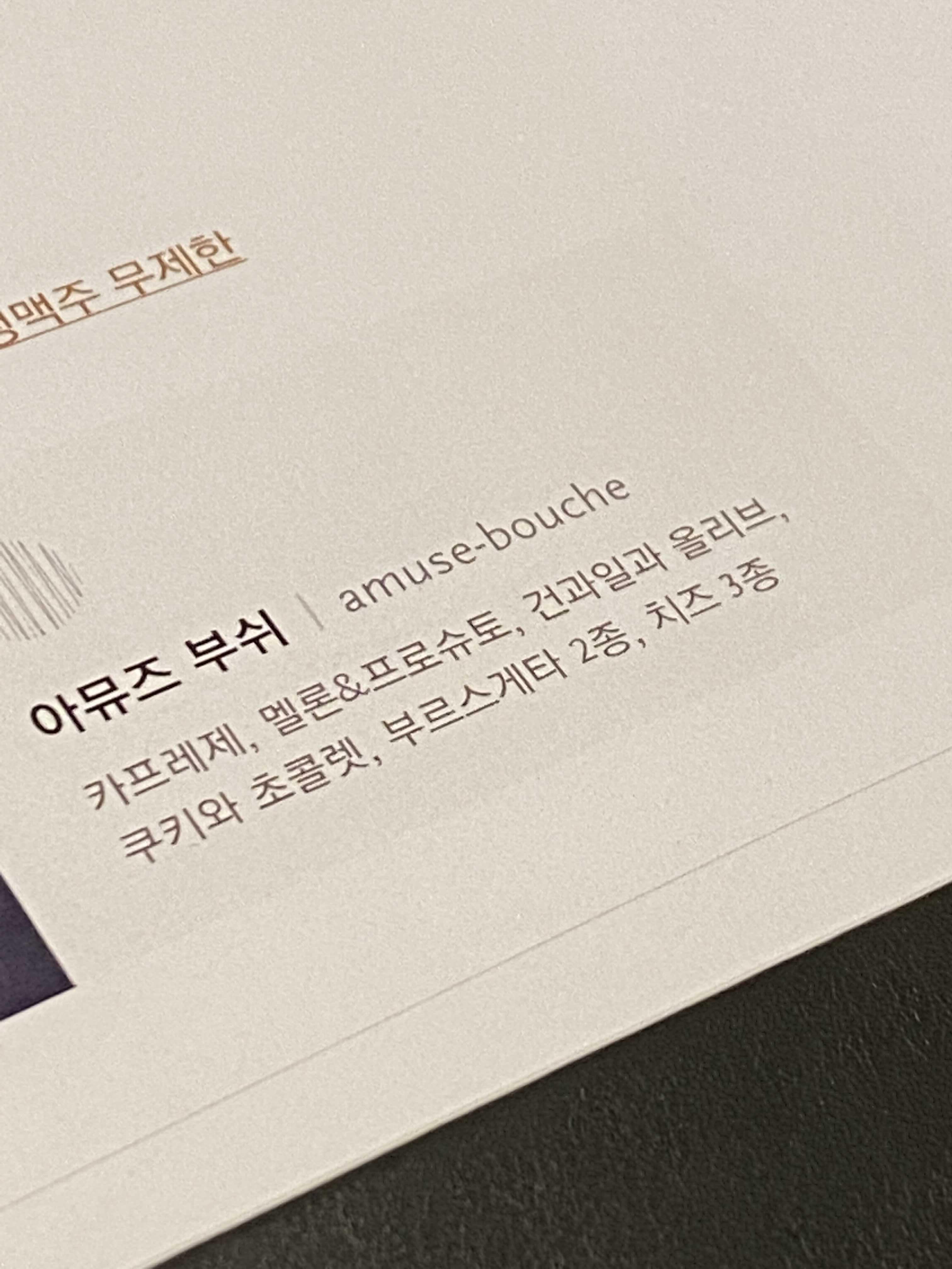 - 구성 : 플래터(아뮤즈 부쉬) + 와인 1병 + 버드와이저 생맥주 무제한