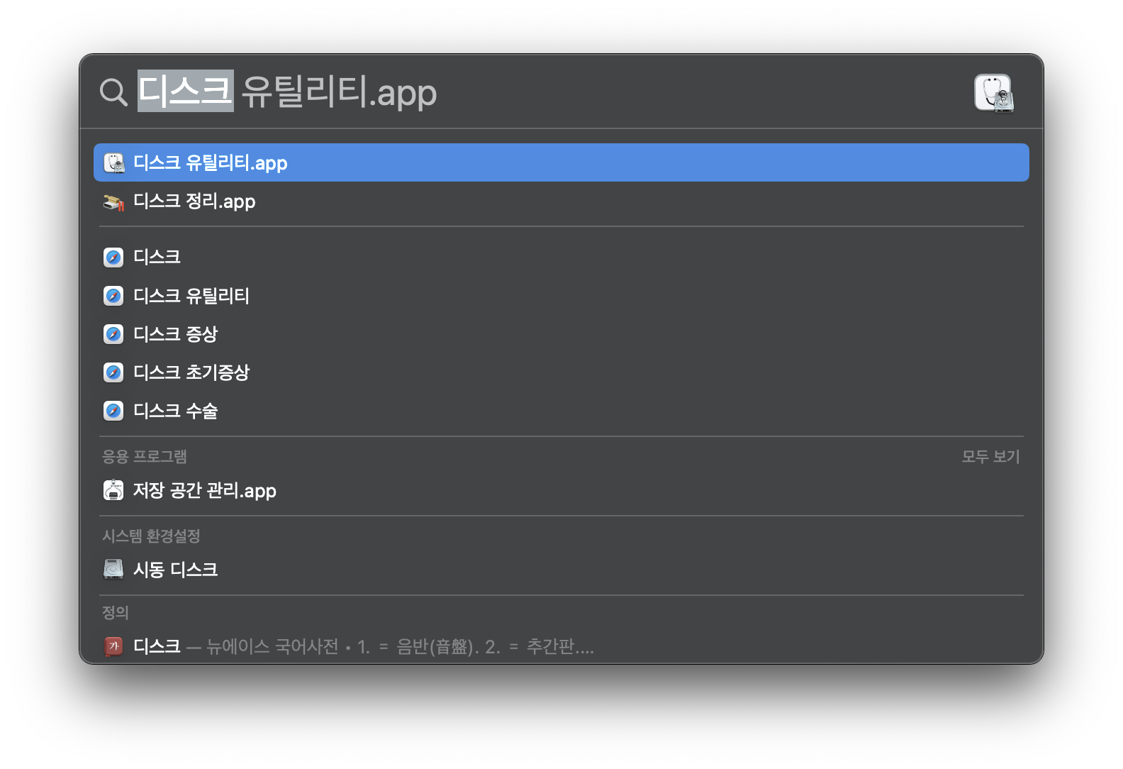 디스크 유틸리티 프로그램을 실행한다