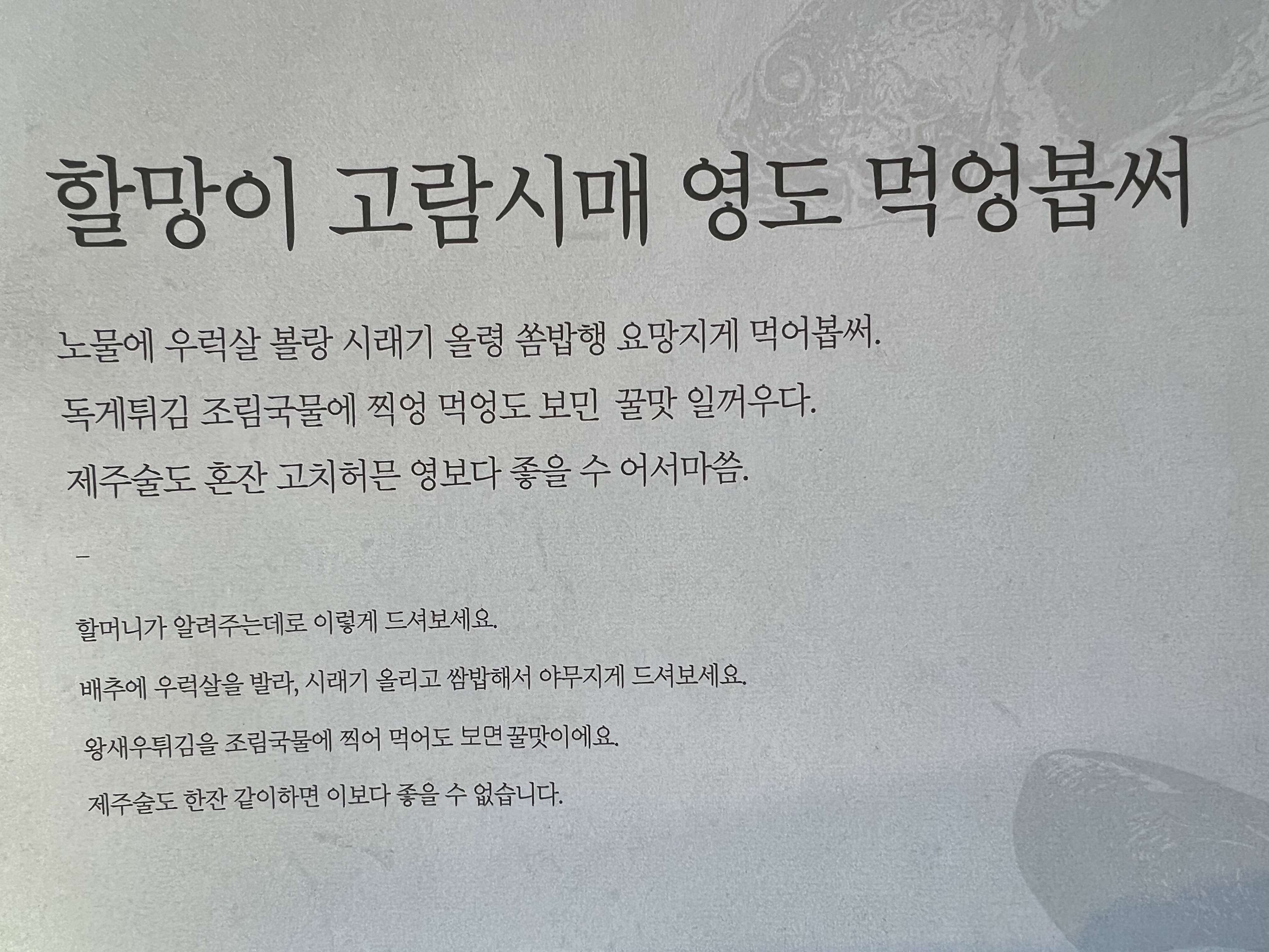 할망이 고람시매 영도 먹어봅써
