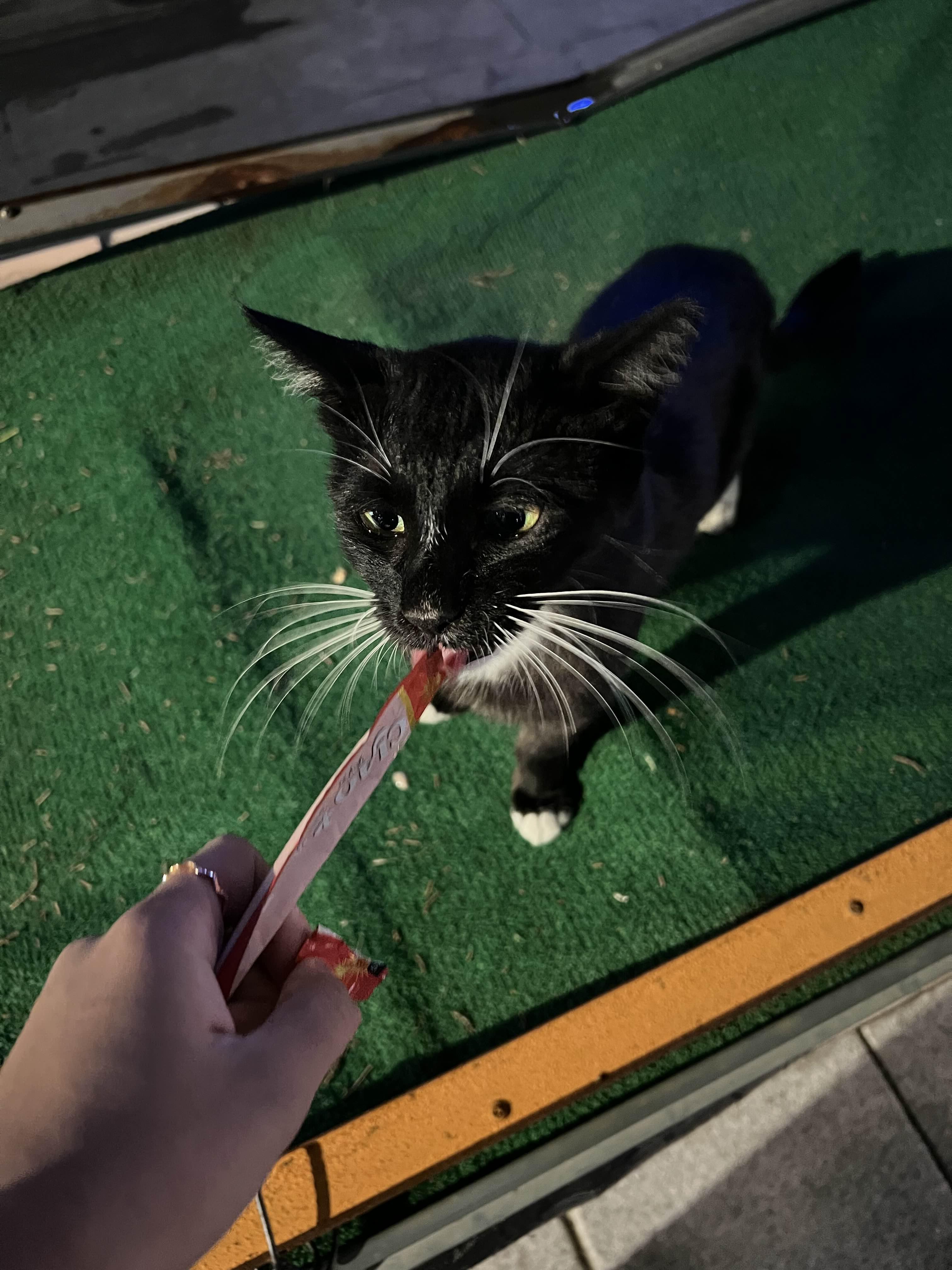 가방에서 츄르 꺼내서 줌