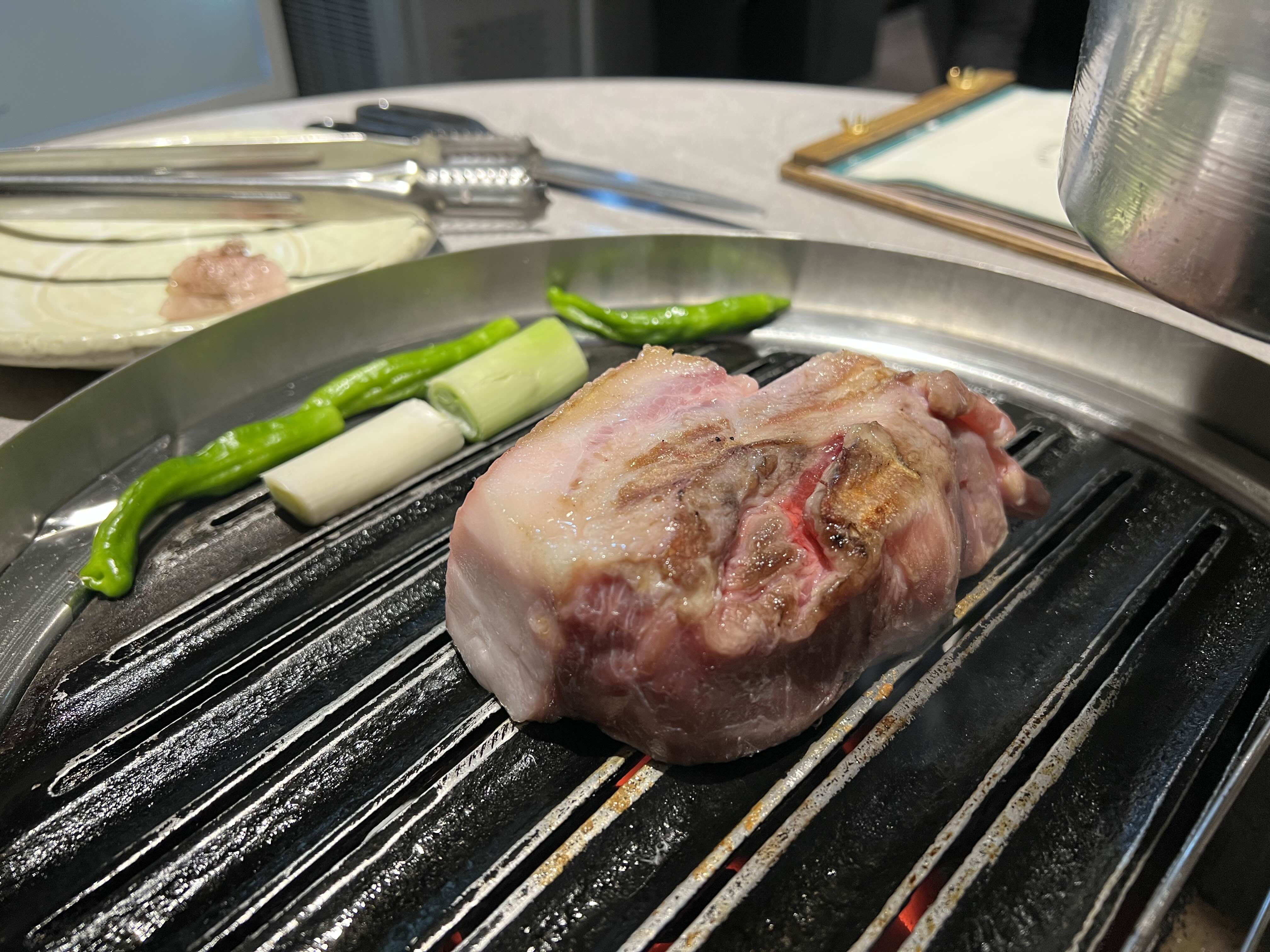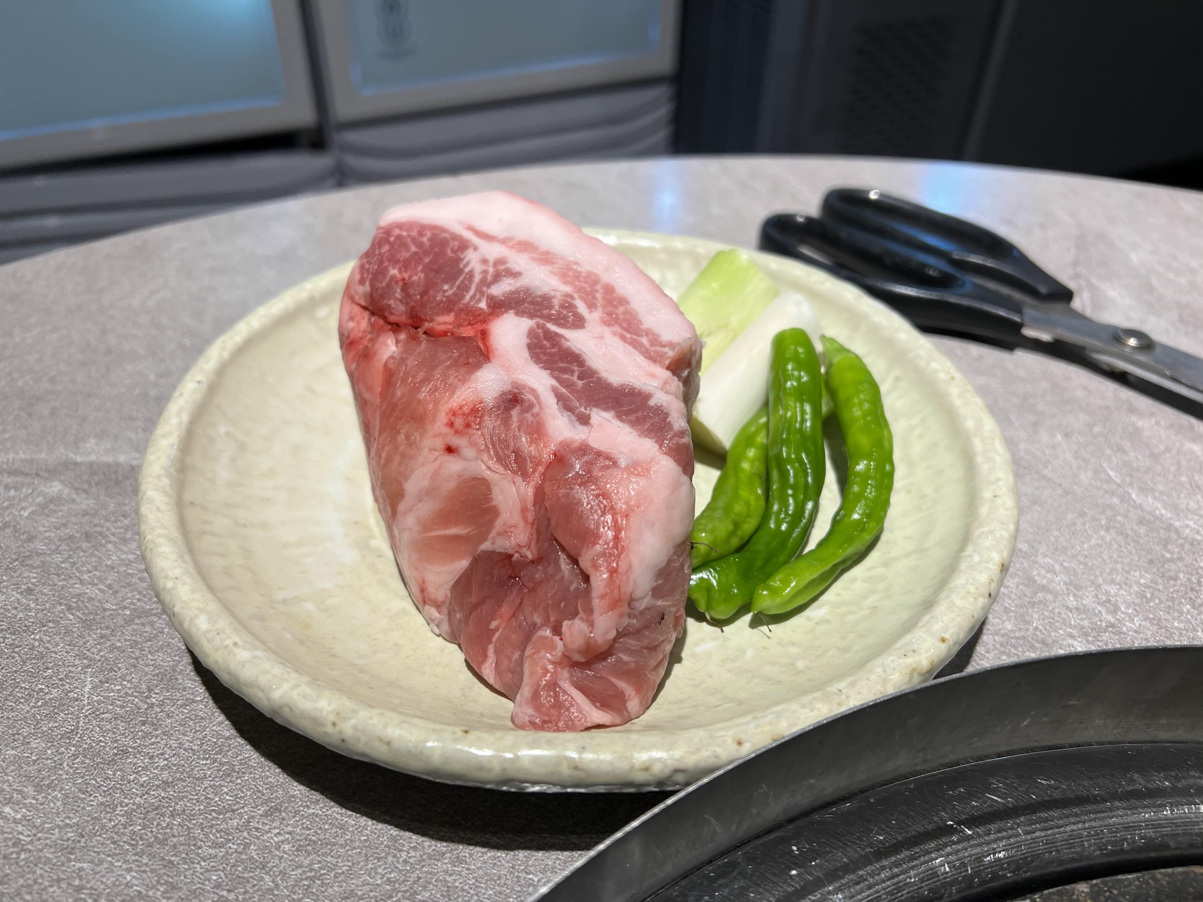 껍데기 붙은 삼겹살도 시켰는데