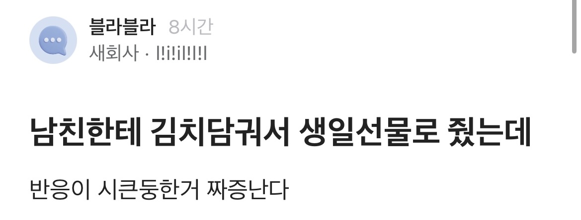 남친 생일선물로 김치 담궈준 블라녀