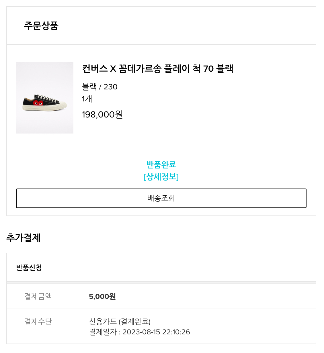 꼼데가르송 플레이 컨버스 척테일러 로우블랙