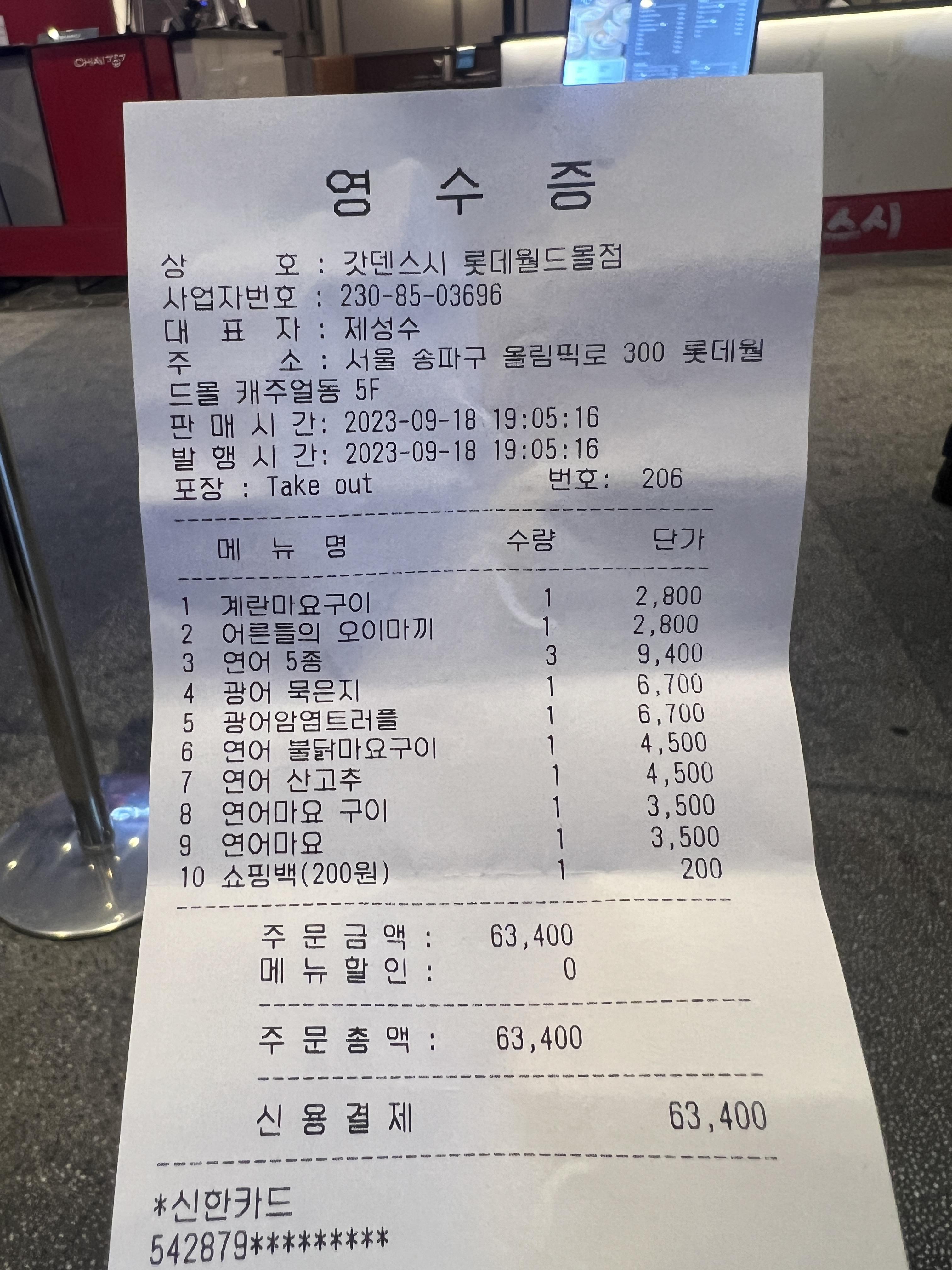 갓덴스시 롯데월드몰점 포장