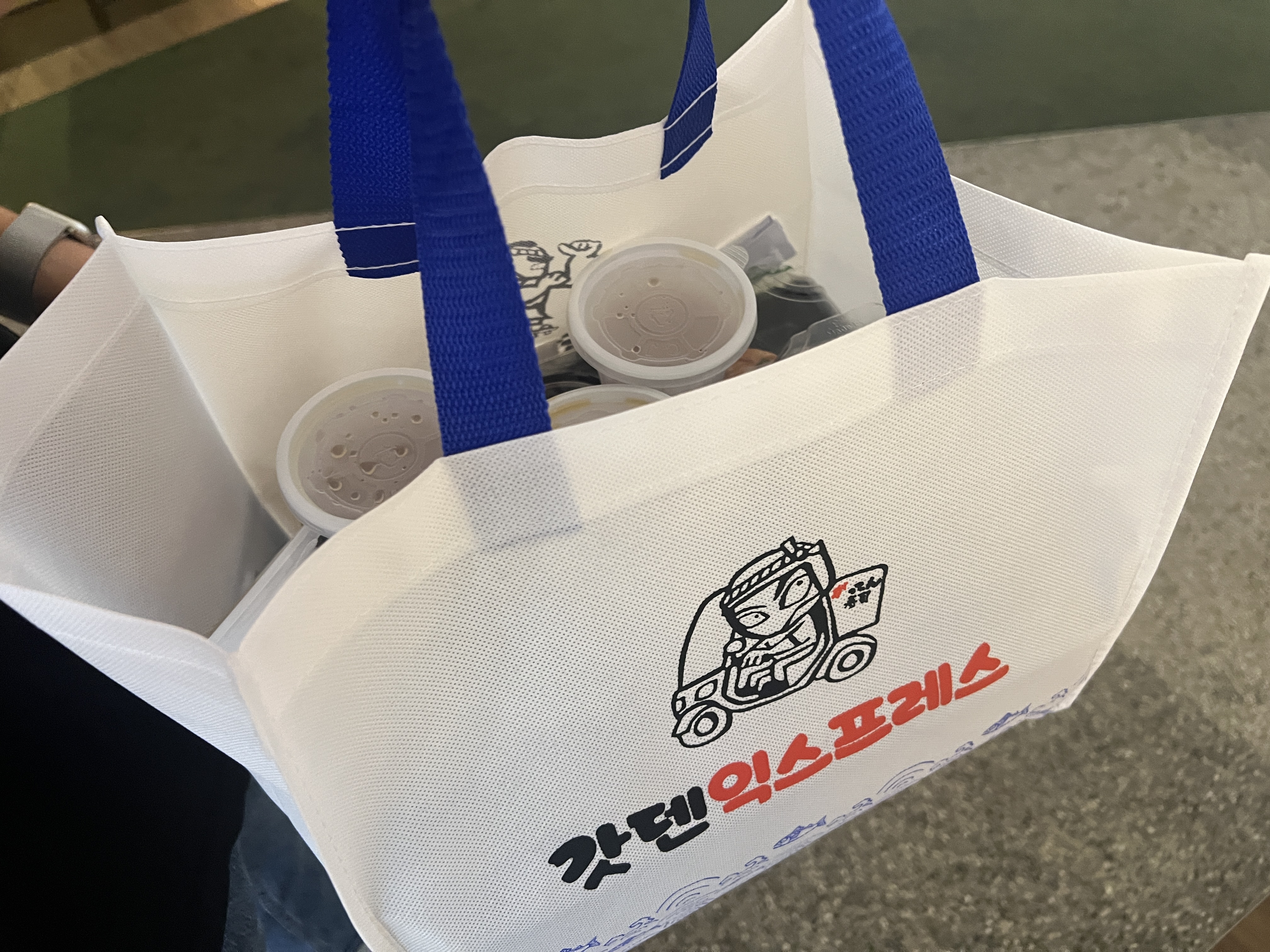 근처 폴바셋에 들려 음료 두잔 포장
