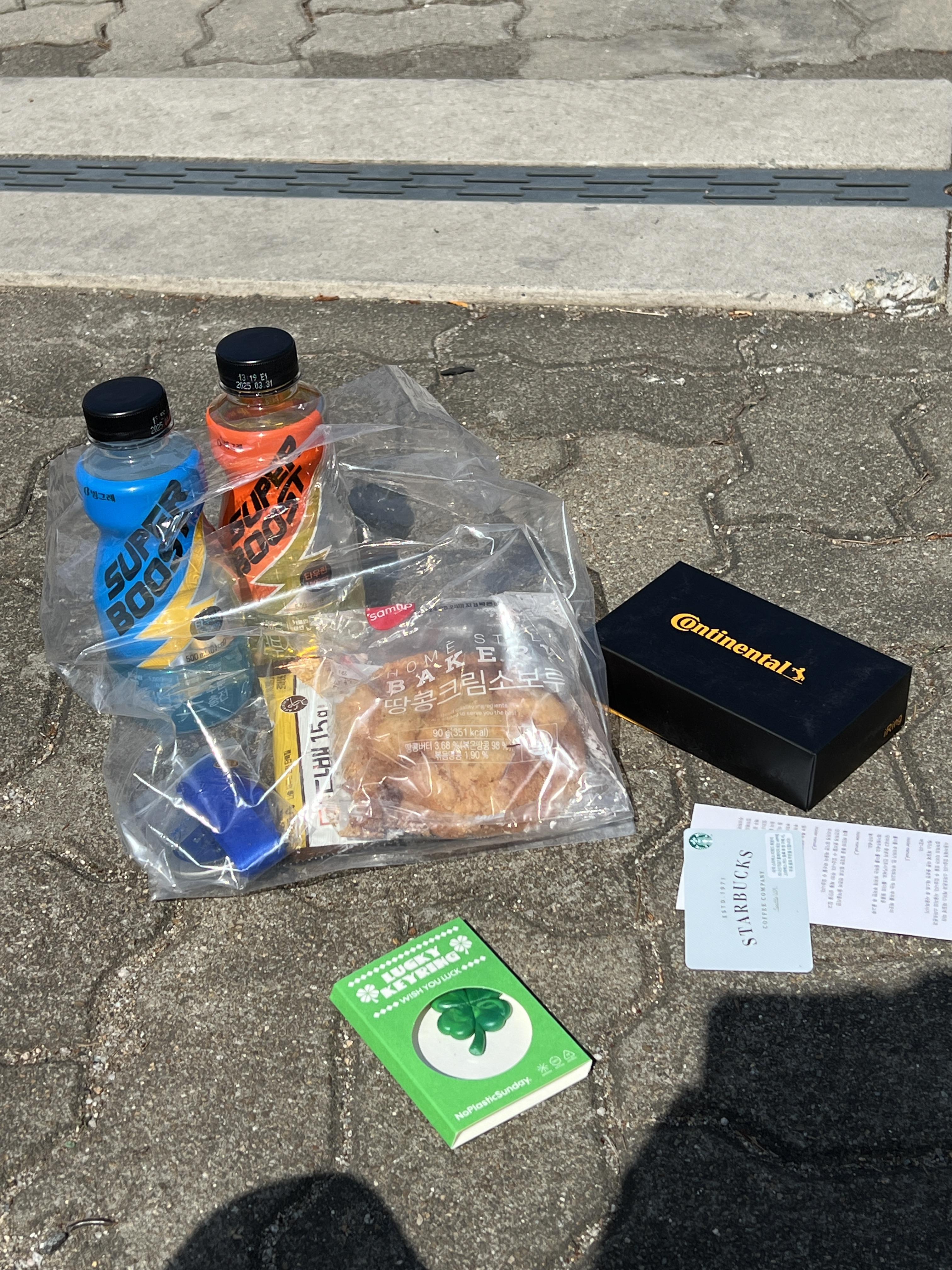 마지막으론 음료수, 빵, 리사이클링 키링, 스벅 교환권 등등 얻음