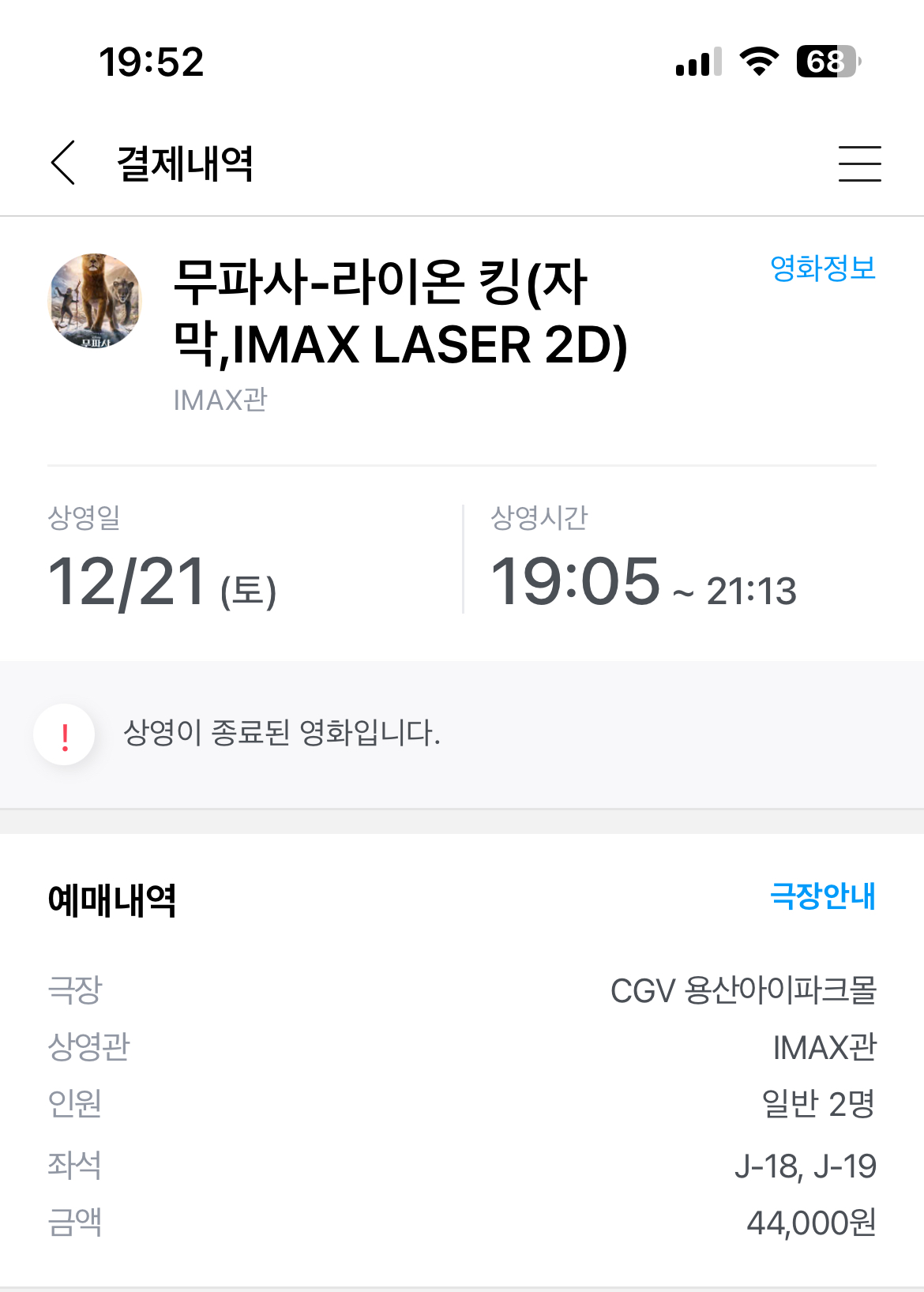 CGV 육개장팝콘과 용아맥 무파사